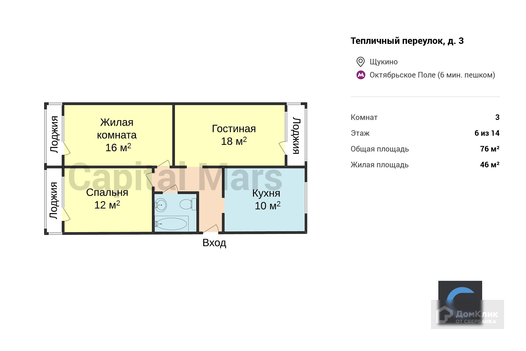 Общая площадь 76 м2
