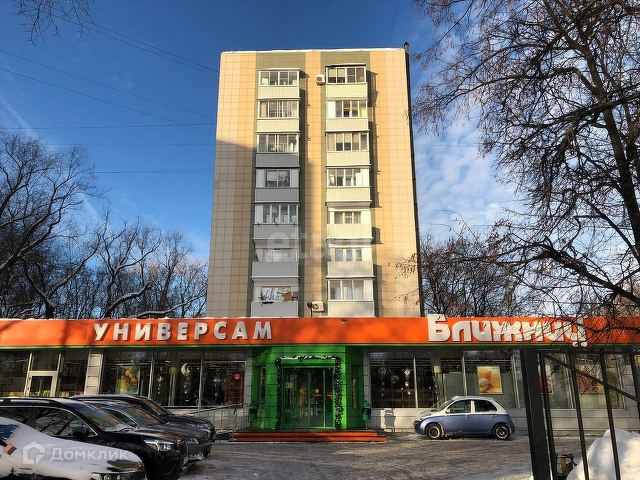 - В доме находится универсам Ближний, вокруг есть продуктовые магазины, кафе, АТАК, ТЦ "Янтарь";