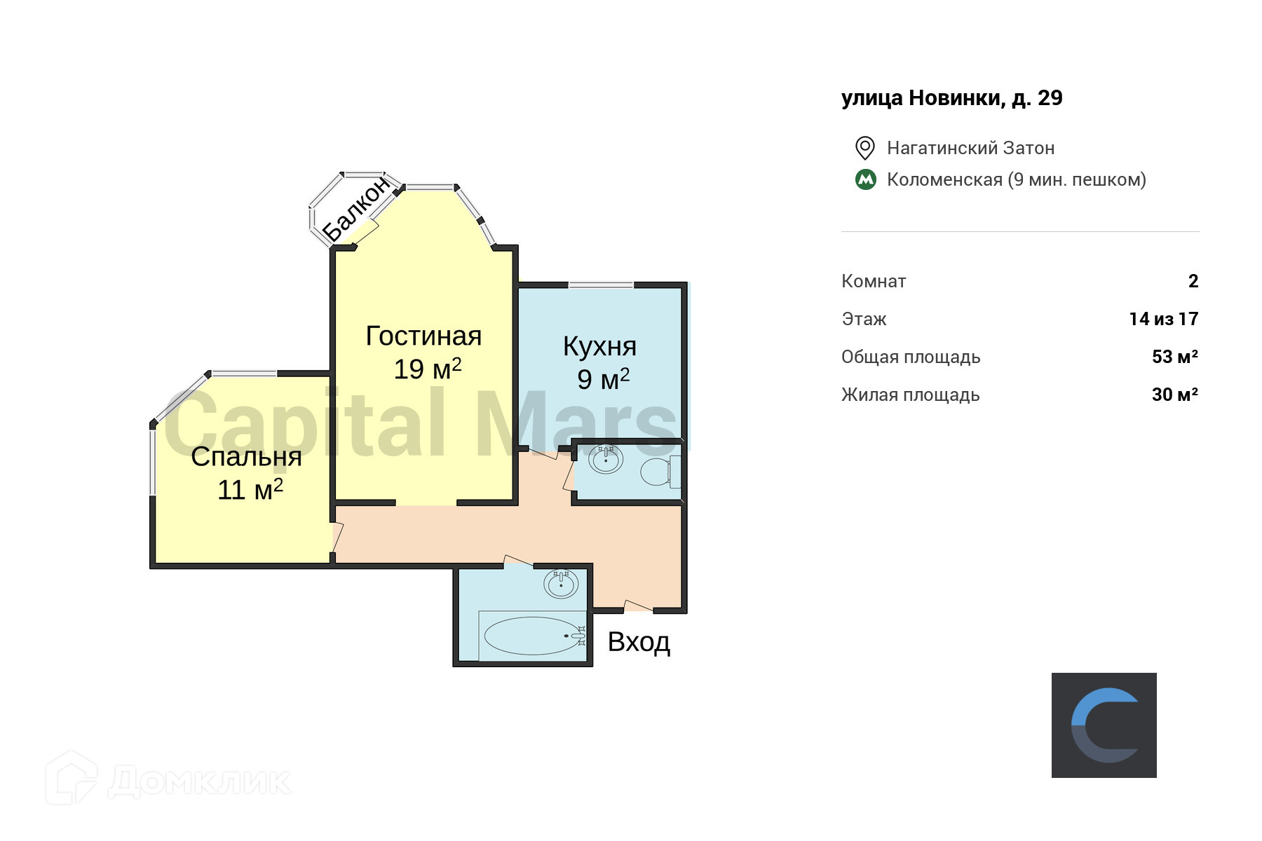 Общая площадь 53 м2
