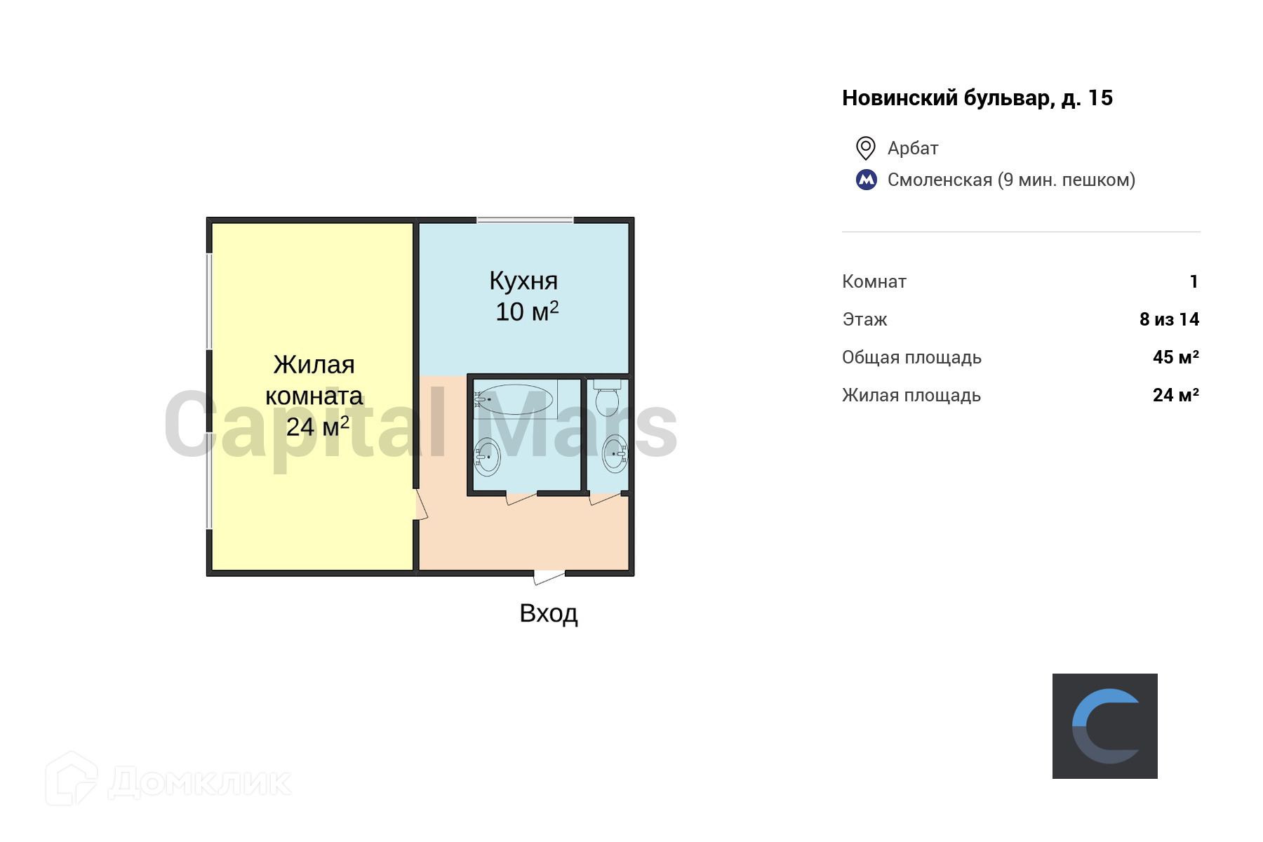 Жилая площадь 24 м2