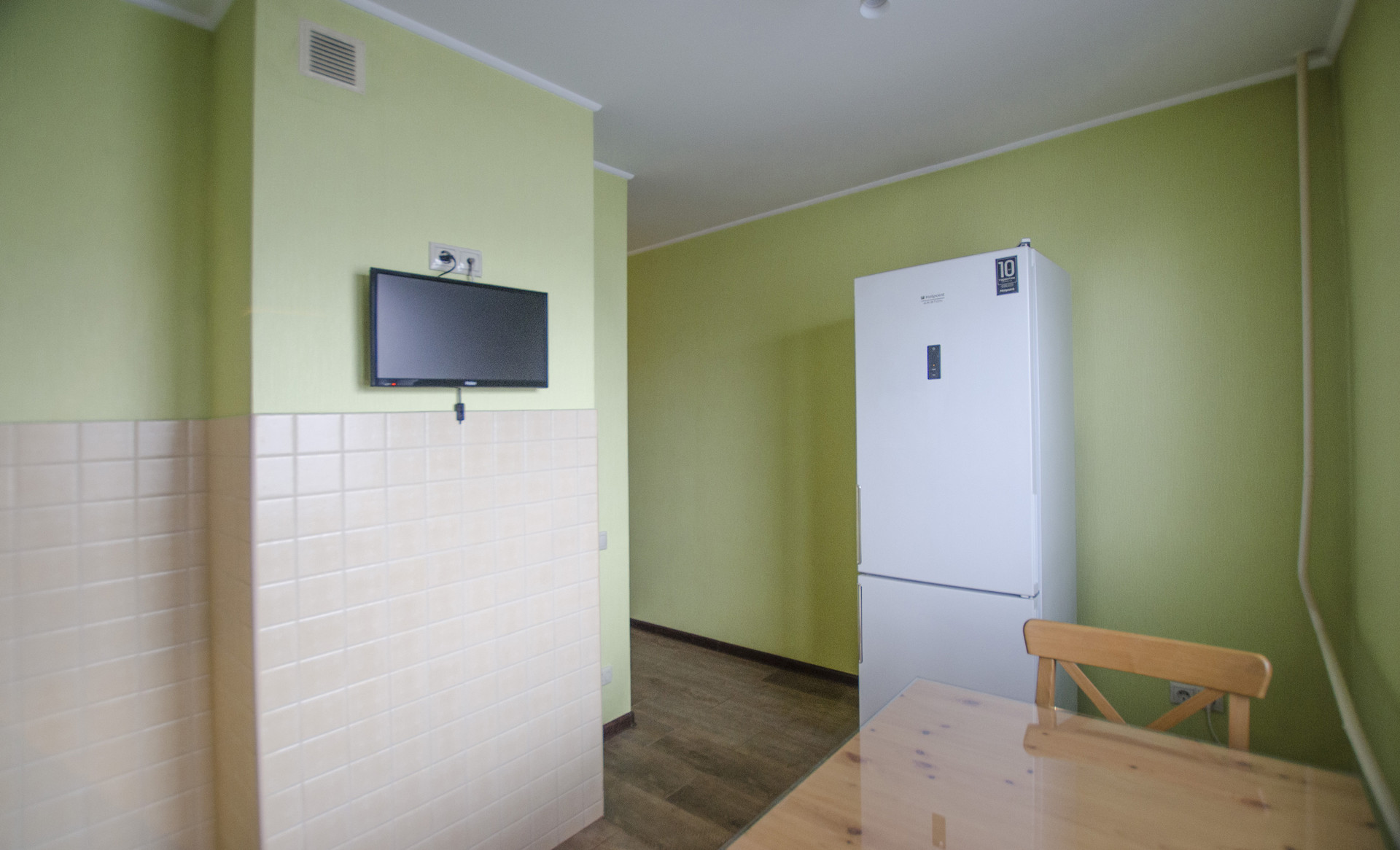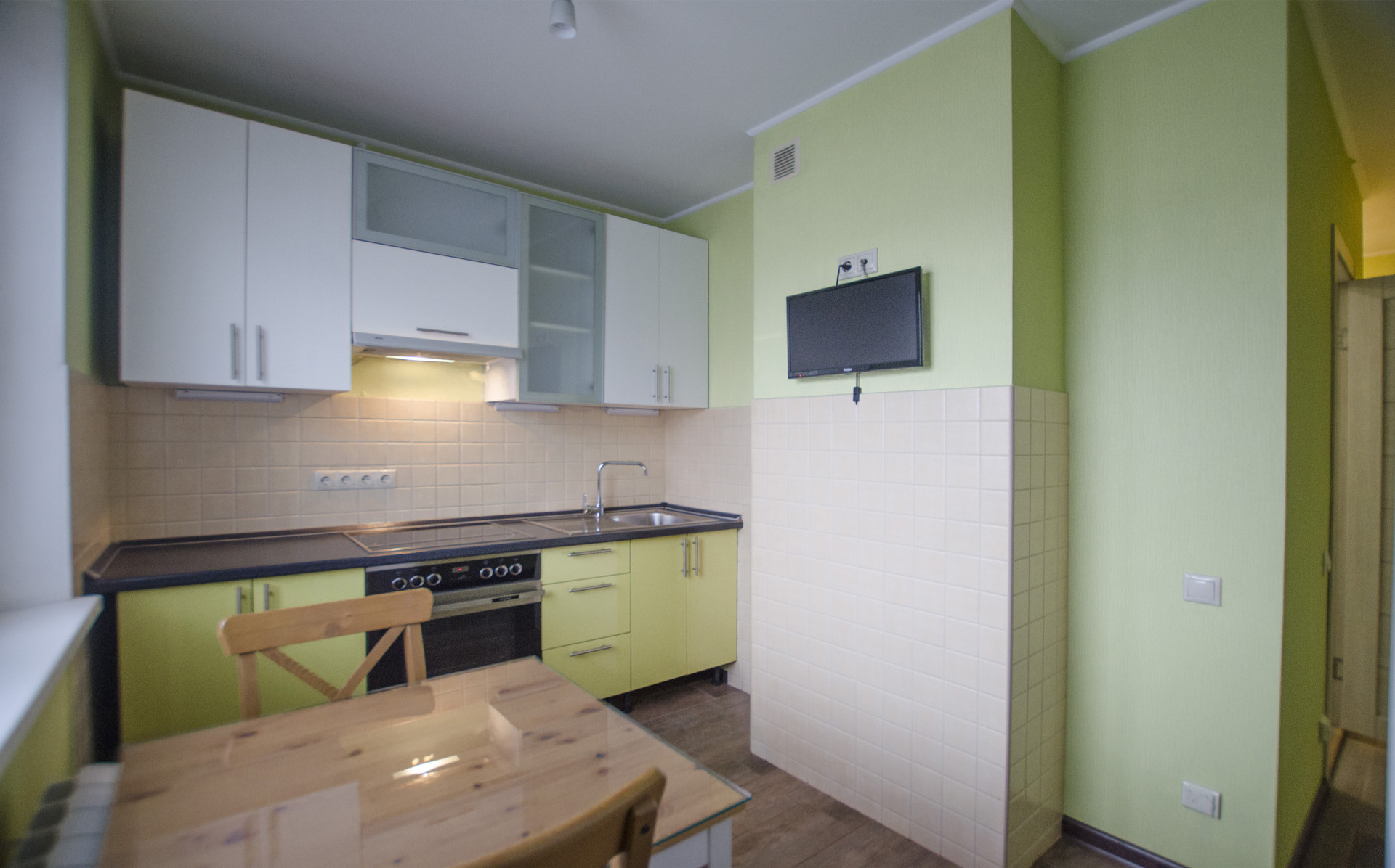 В кухне  - функциональное рабочее место, оснащенное современной бытовой техникой, включая духовую печь и варочную панель, под единой столешницей, вытяжку, двухкамерный холодильник и ЖК телевизор. Пол с подогревом.