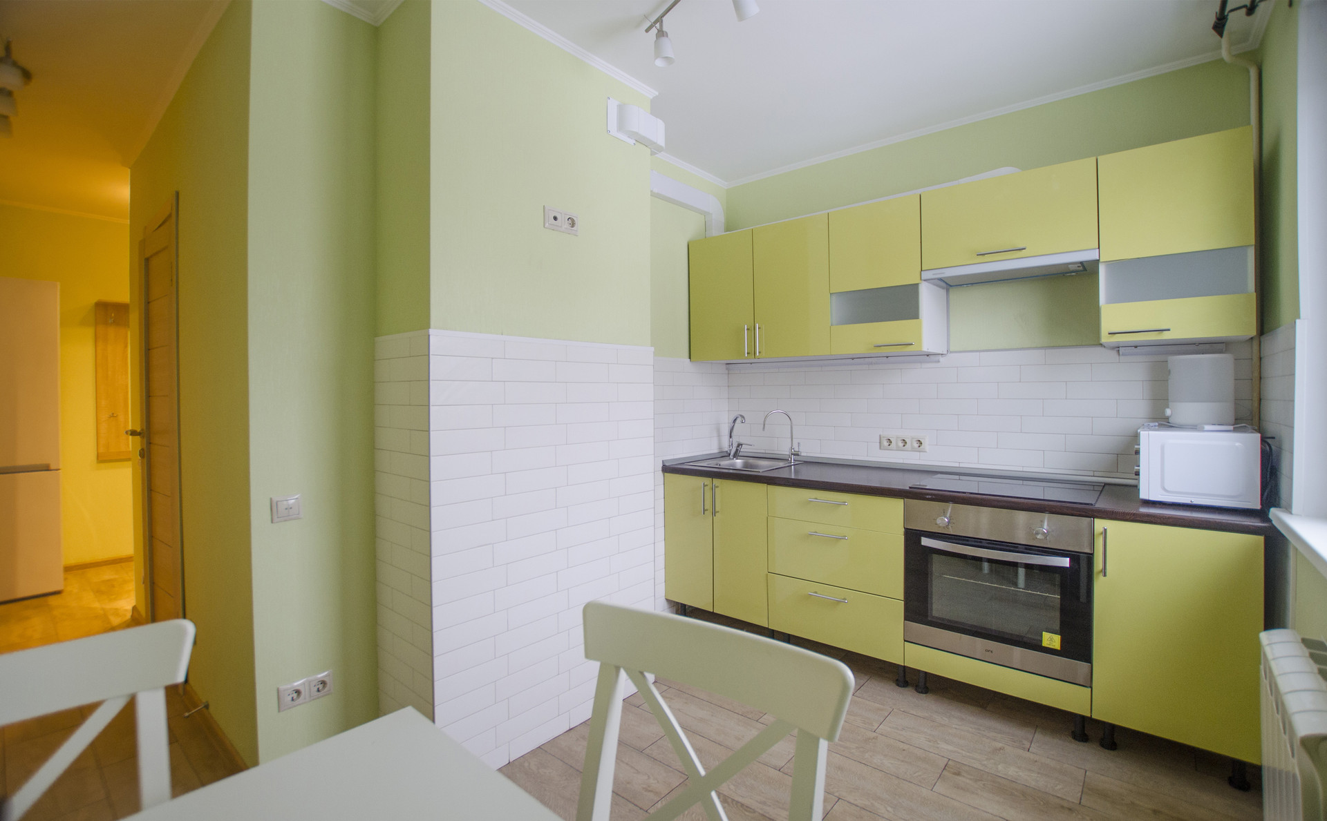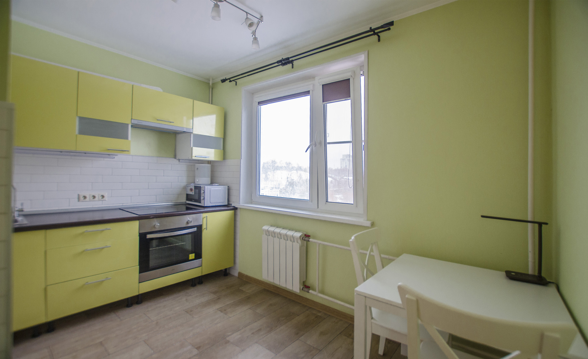 В кухне  - функциональное рабочее место, оснащенное современной бытовой техникой, включая духовую печь и варочную панель, под единой столешницей, вытяжку, СВЧ, двухкамерный холодильник. Пол с подогревом.