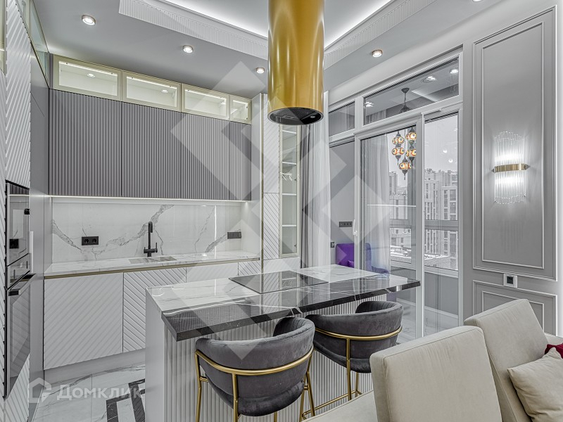 Функциональная планировка: кухня-гостиная со всей необходимой техникой фирмы NEFF, 2 спальни, одна из которых с собственной гардеробной комнатой, 2 санузла, с ванной и душевой кабиной со стиральной машинкой и сушкой, две лоджии, оборудованные под кабинет и кальянную(лаундж зону).