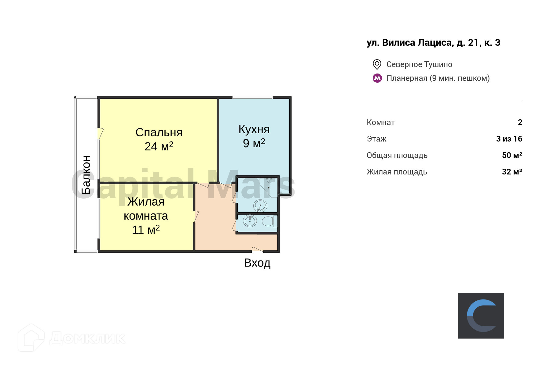 Общая площадь 50 м2