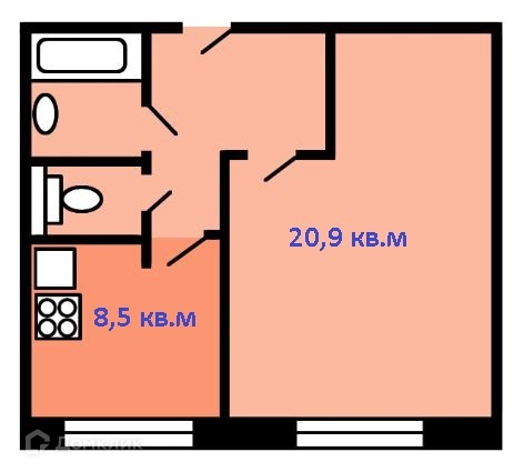Жилая площадь 20.9 м2