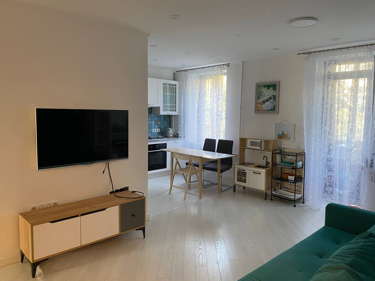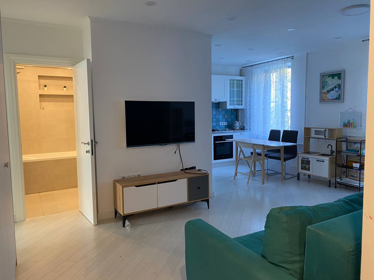 Сдается трехкомнатная квартира в теплом кирпичном доме, в элитном районе, тихий двор, видеонаблюдение, солидные соседи. Квартира в светлых тонах, с дизайнерским ремонтом, c качественной дорогой мебелью и техникой. Ремонт делали для себя, квартира еще не разу не сдавалась. Квартира очень светлая, просторная, в современном европейском стиле, полностью укомплектована и готова для проживания. В квартире две спальни, взрослая и детская. В детской две кроватки для детей 3-8 лет, шкафы для одежды и игрушек, скалодром, мольберт и доска для рисования мелом, детский стол и стульчики. Есть подсветка для двухэтажной кровати. На одной стене обои с очень милым рисунком, обои в прекрасном состоянии. В спальне огромный раскладной диван, очень удобный. Стол-подоконник, шкаф для книг и тумба для бумаг. Разнообразная подсветка, проходной выключатель. В гостиной большой встроенный шкаф для вещей. Раскладывающий диван со свежей химчисткой, место для рабочего стола. Телевизор LG. Встроенная кухня с посудомоечной машиной, измельчителем отходов в раковине, варочная панель SMEG (газово/индукционная), духовка, микроволновая печь, холодильник с морозильной камерой. Новая посуда. В коридоре: детские шкафчики для двоих детей с ящиками и дверцами, вешалка для одежды. Капитальный ремонт был сделан в 2018 г, Квартира теплая. Санузел совмещенный, стиральная машина Indesit, термостат, тропический душ, подвесной унитаз, ванная, Подогрев полов на кухне, в коридоре и в ванной, установлена система управления теплым полом. Датчики протечки на кухне и в ванной, автоматическое перекрытие воды и сигнализация при протечке. Пылесос Дайсон. Кондиционеры (охлаждают и нагревают помещение) в каждой спальне и в гостиной. Балкон закрыт. Окна выходят на на обе стороны дома, в зеленые дворы, нет шума. Двор со шлагбаумом, во дворе детская площадка, вокруг дома в каждом дворе разные детские площадки, много детских садов, гос. и частные элитные школы, парки, в том числе Воробьевы горы пешком, до метро Ломоносовский проспект 7 минут через парк, Вкусвилл, Сбербанк, аптеки в пешей доступности. Очень зеленый, тихий район, 10-15 минут до центра на машине. Видеодомофон в квартире( наблюдение за площадкой в подъезде). Парковка во дворе. Видеонаблюдение в подъезде. Сдается строго без животных. Можно с детьми.