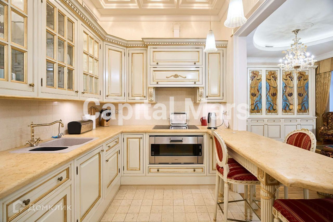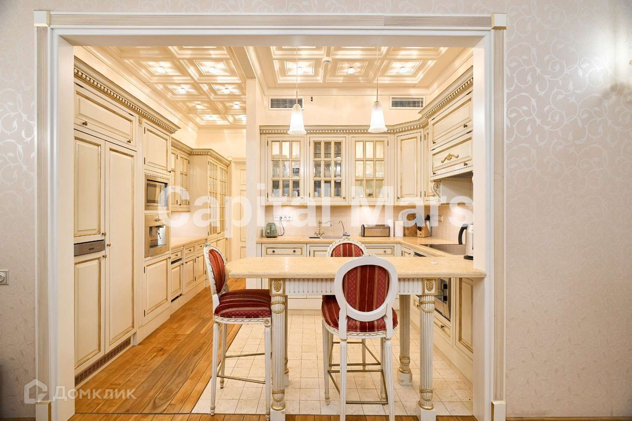 БЕЗ КОМИССИИ ДЛЯ АРЕНДАТОРА. Предлагается просторная квартира в дореволюционном особняке у Патриарших прудов. Уютная двухзонная спальня, стильный кабинет и гостиная с резной мебелью отвечают люксовым требованиям эстетики и комфорта. Элегантная кухня полностью укомплектована техникой, включая посудомоечную и кофе-машины. Оборудованы просторная гардеробная, а также шикарная совмещенная ванная и гостевая уборная. В нишу встроены стиральная и сушильная машины.