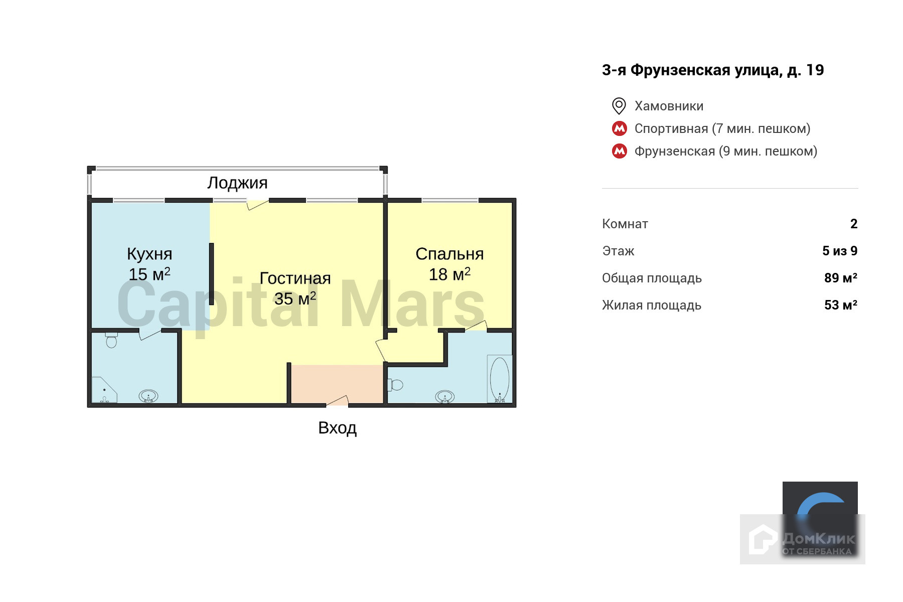 Общая площадь 89 м2