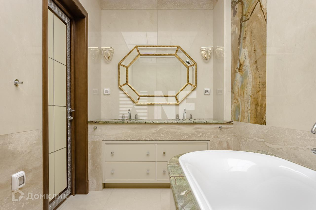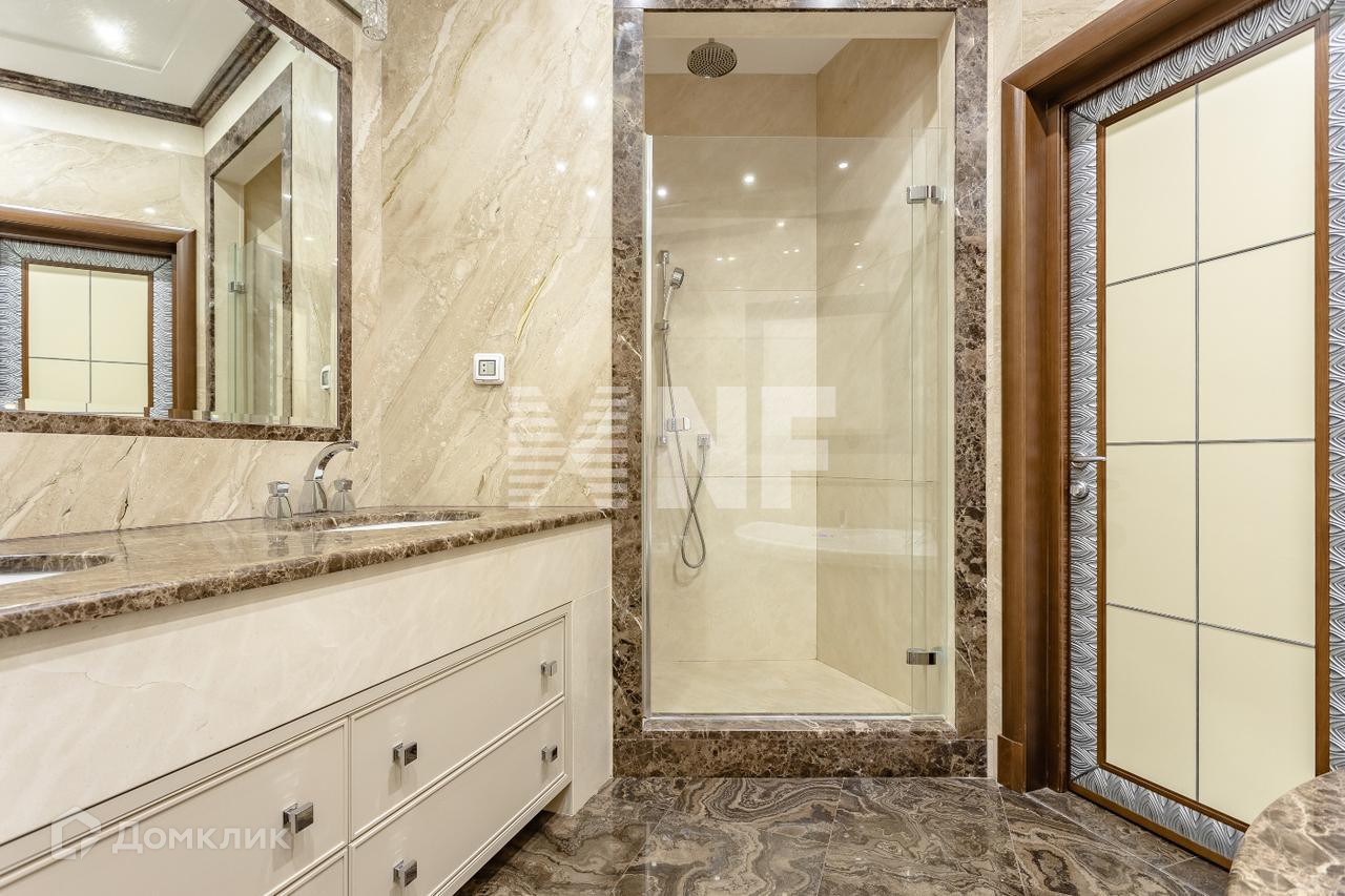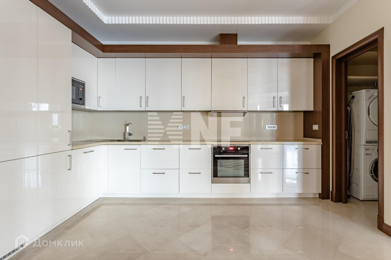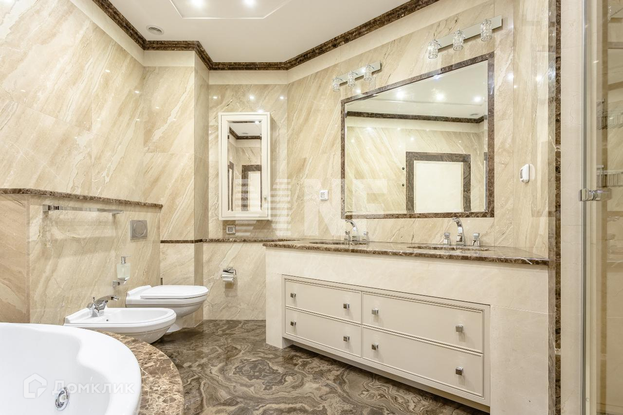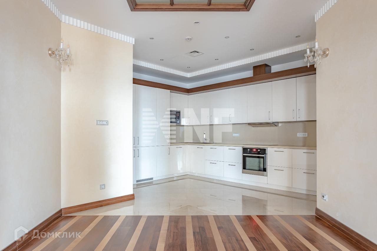 Выполнена отделка в классическом стиле с применением натуральных материалов, встроенная кухня оснащена бытовой техникой от ведущих производителей, в санузлах установлена сантехника премиум-класса.