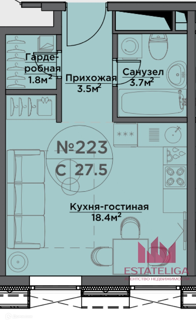 Общая площадь 28 м2