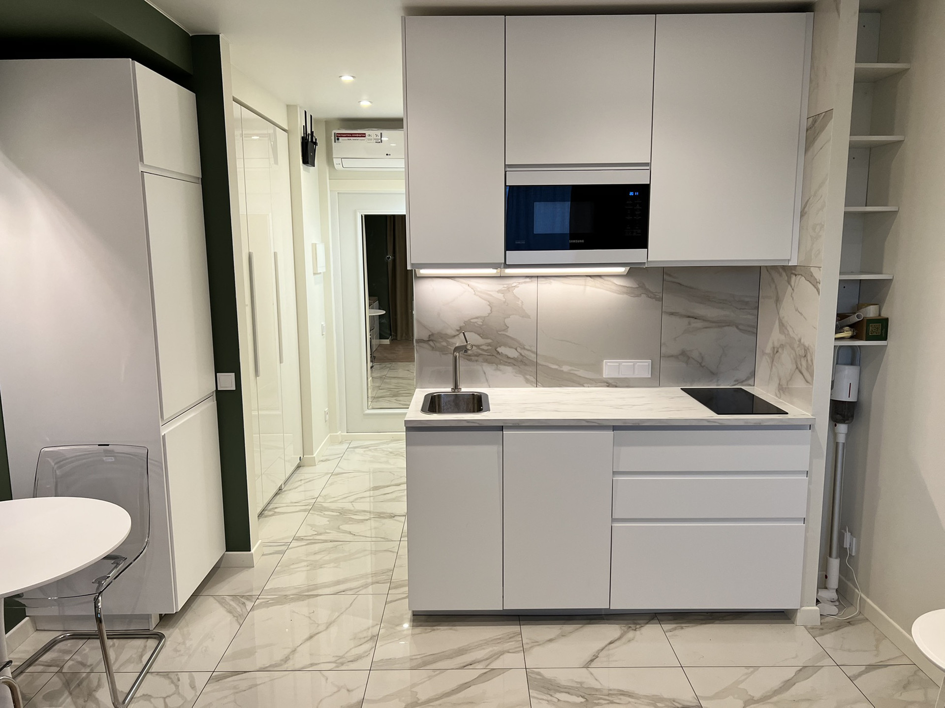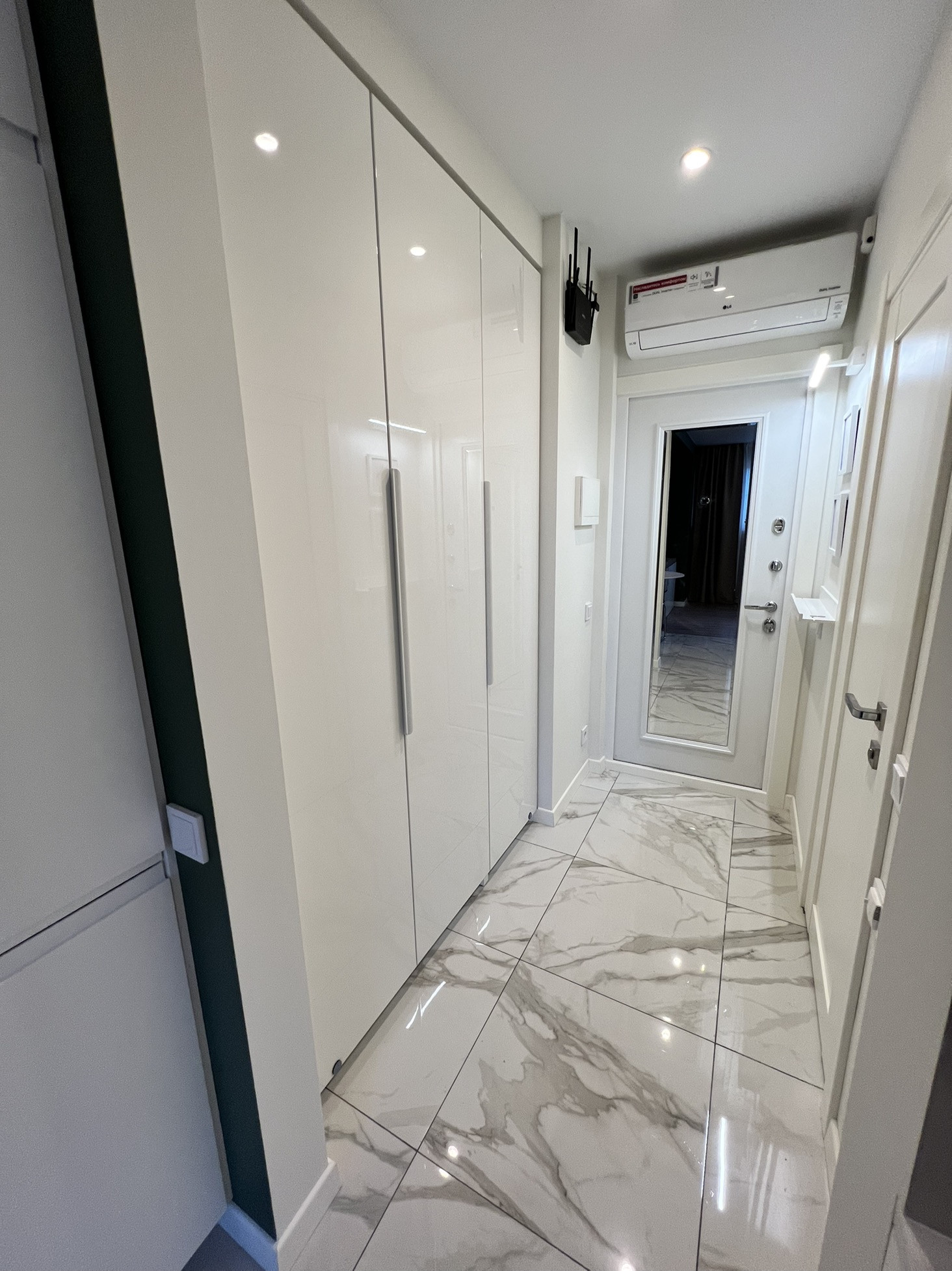 Так же в коридоре расположен кондиционер, специально подальше от спального места, что исключает возможность того, что вас продует потоками воздуха.