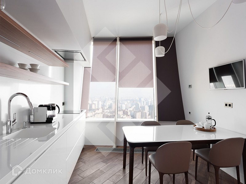 Апартаменты для ценителей роскоши и стиля в престижном ЖК Дирижабль. Панорамные наклонные окна на 39-м этаже удивят даже искушенных гостей.