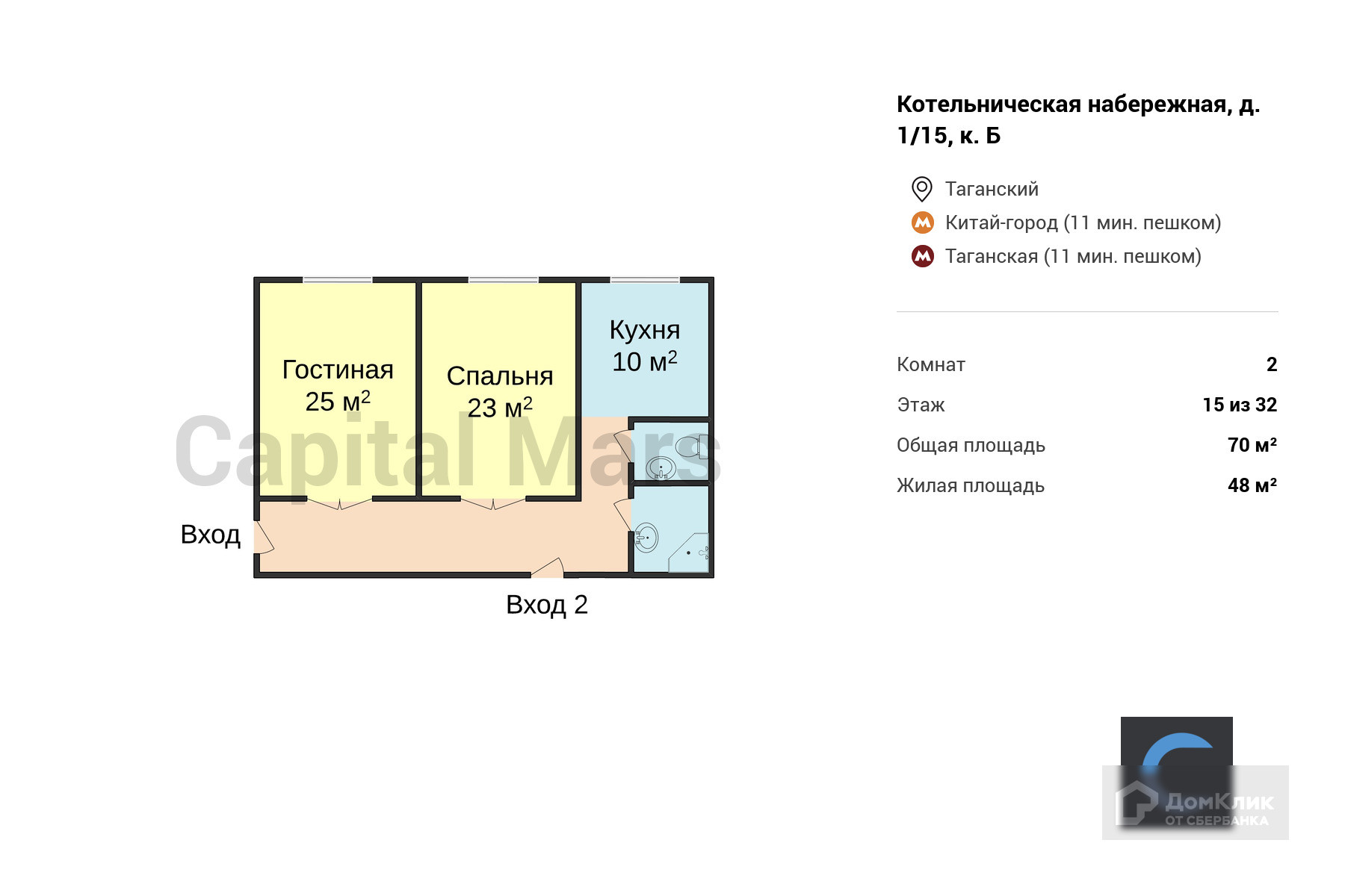 Жилая площадь 48 м2