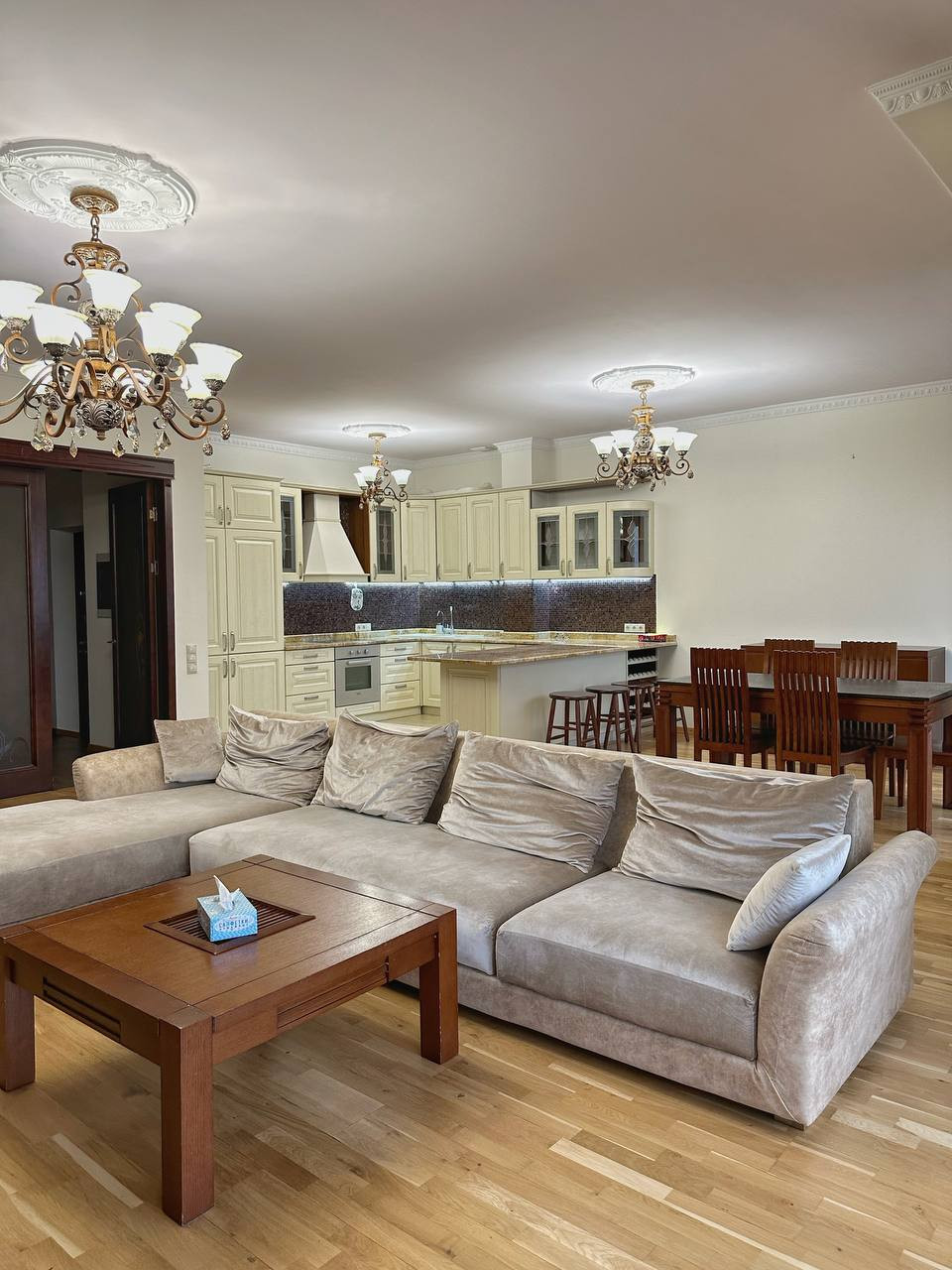Общая площадь квартиры - 145 кв. м.. Высота потолков - 2.8 м.