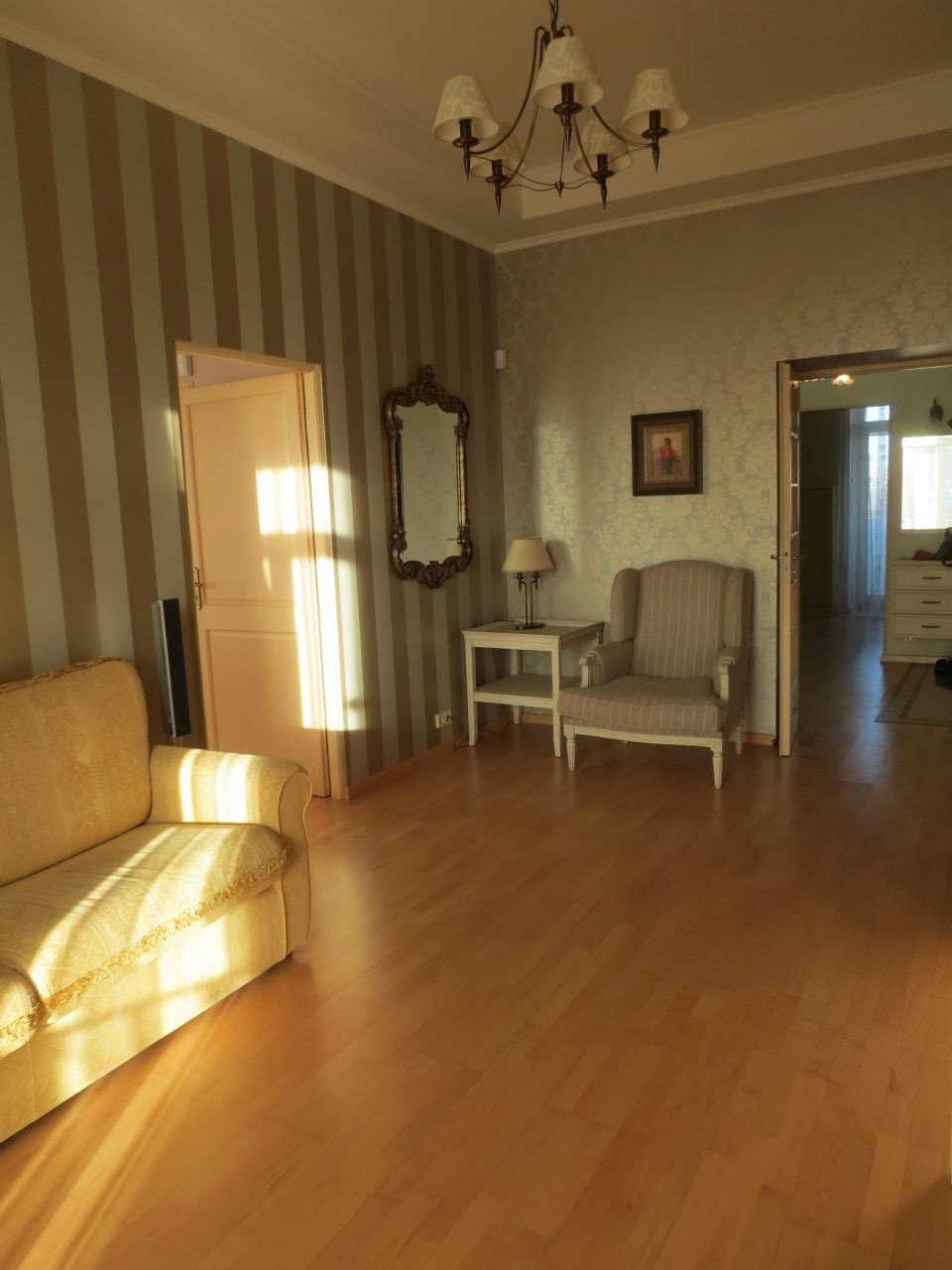 - Гостиная и из нее выход в две изолированный комнаты.  Окна на две стороны.