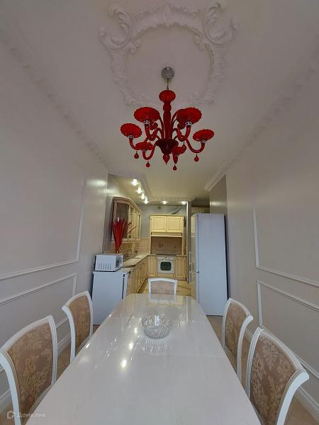 Оснащена всей необходимой НОВОЙ бытовой техникой, полноценная Кухня - Столовая, переходящая в просторный коридор с огромным Шкафом -Купе, красивая Ванная комната, стиральная и посудомоечная машины отдельно стоящие, очень мощный кондиционер BORK, рассчитанный на всю площадь квартиры. Мебель из натурального дерева производства Италия, огромный белый диван из натуральной кожи, американский ортопедический матрас из натурального латекса.