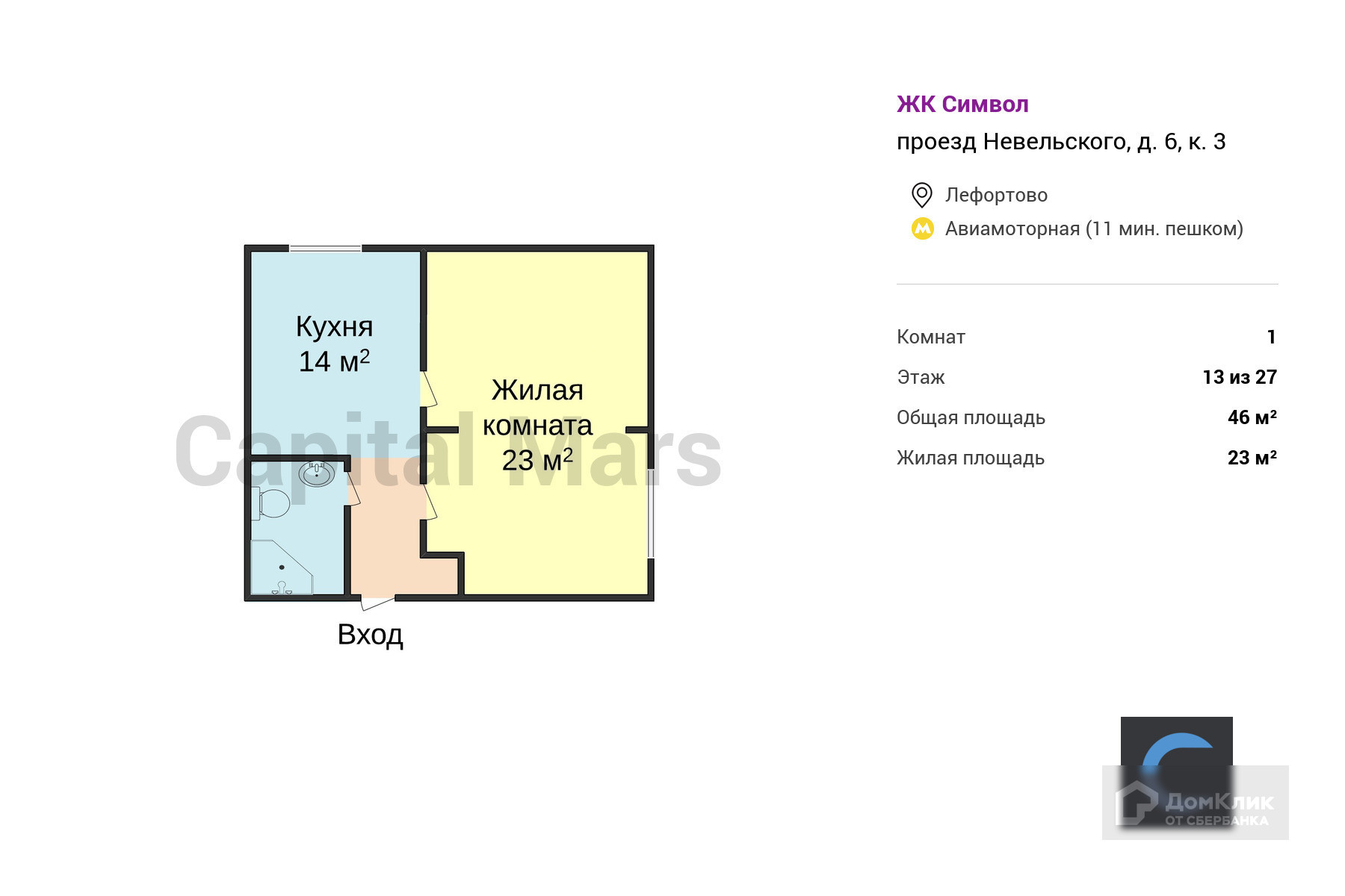Общая площадь 46 м2