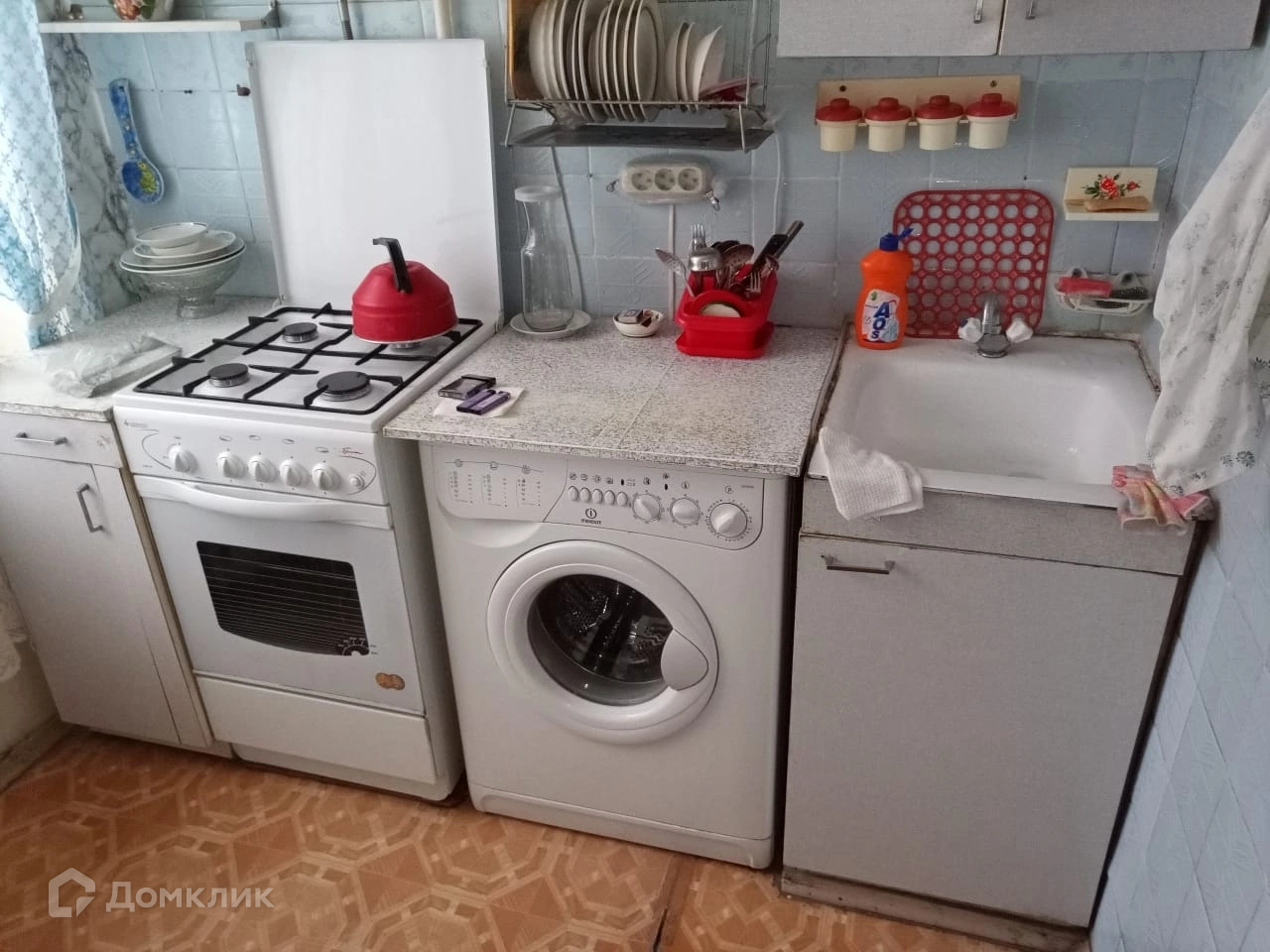 В квартире есть все для проживания: стиральная машинка, СВЧ, холодильник, плита с духовым шкафом.
