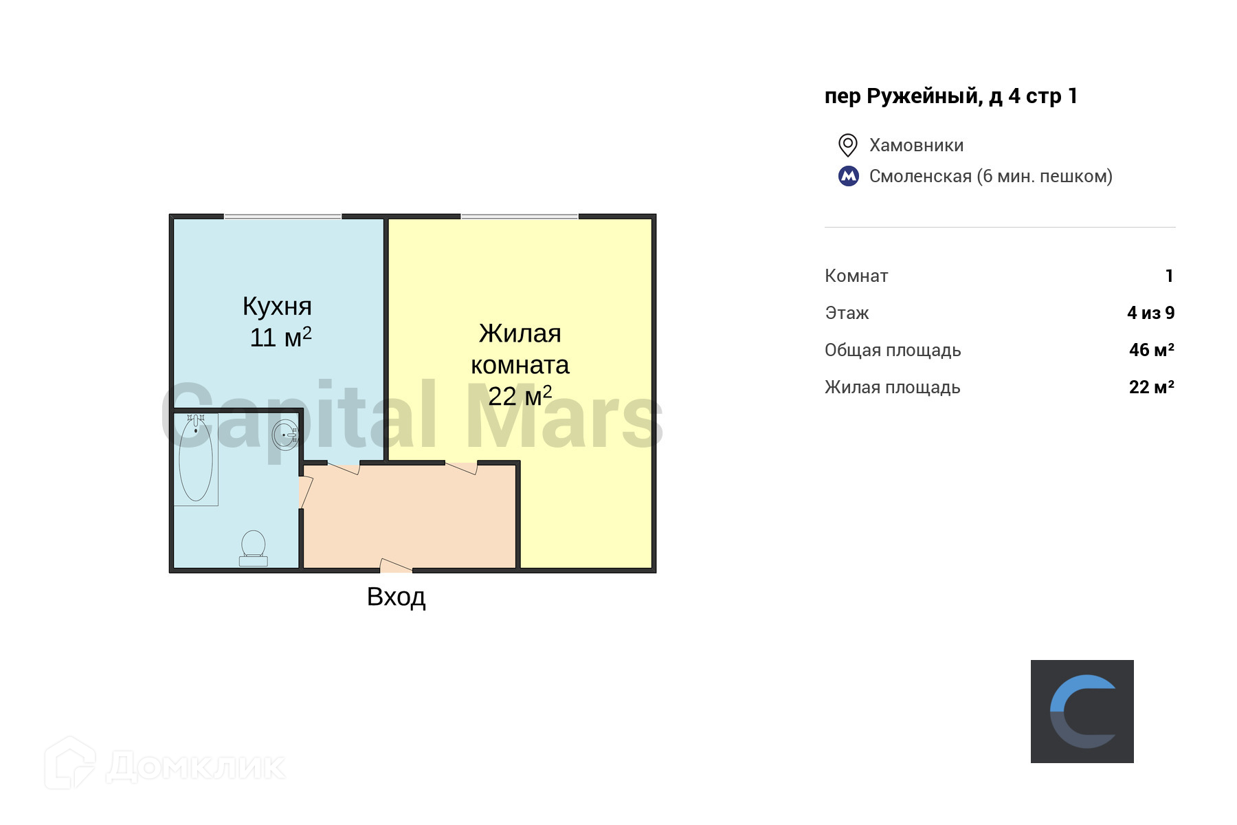 Общая площадь 46 м2