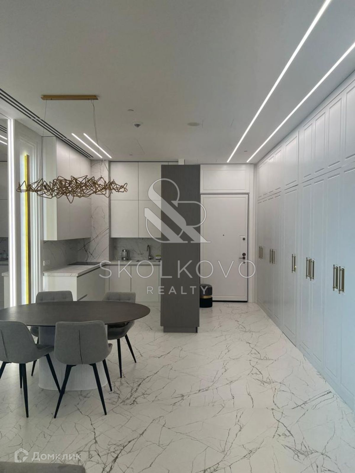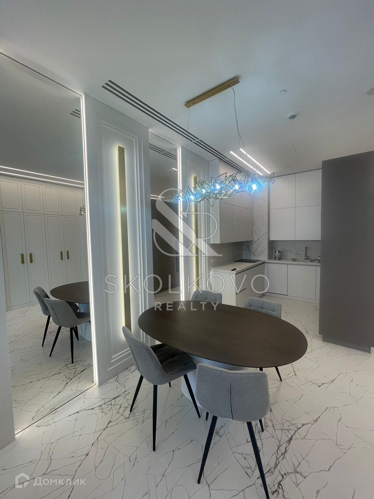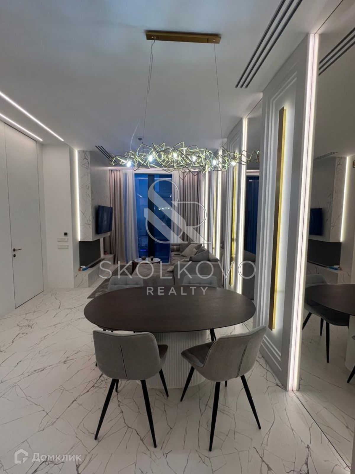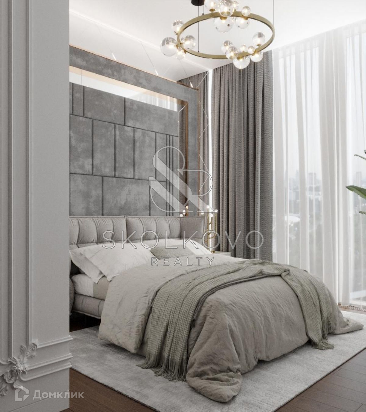 Квартира расположена на 45 этаже 78-этажного дома. Из окон открывается панорамный вид на Москву-реку.