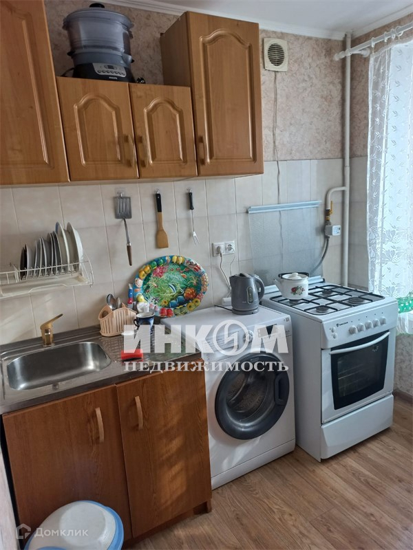 Лот № 3450119 Уютная квартира в непосредственной близости от метро. Кухонный гарнитур со всей бытовой техникой. Кондиционер.  В комнате: диван, шкаф, стол. Балкон застеклен. Дом кирпичный. Окна во двор.