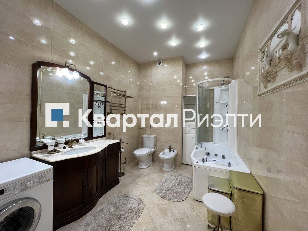 Просторная гостиная с увеличенной площадью остекления, холл, большая спальня, детская комната с балконом. Кухня с лоджией отделена от гостиной раздвижными дверьми и укомплектована необходимой бытовой техникой. Большая ванная, гардеробная, вместительный встроенный шкаф для верхней одежды в прихожей. Кондиционеры.