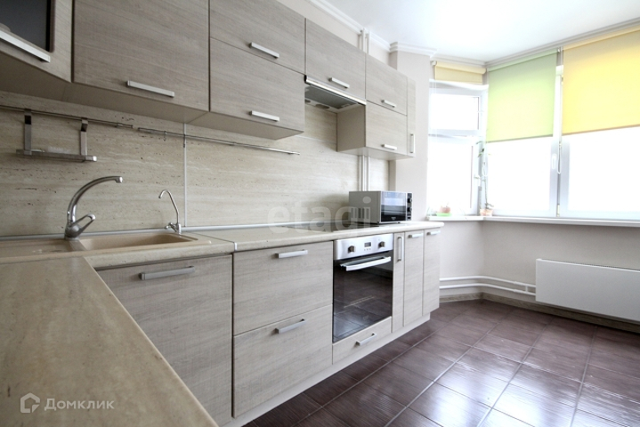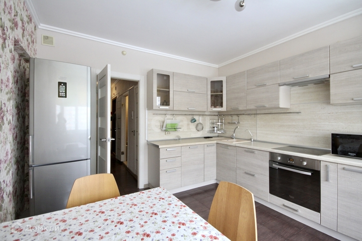 - Есть вся необходимая мебель и техника, включая кухонный гарнитур: духовой шкаф, электрическую варочную панель и микроволновую печь бренда HotPoint и т.п;