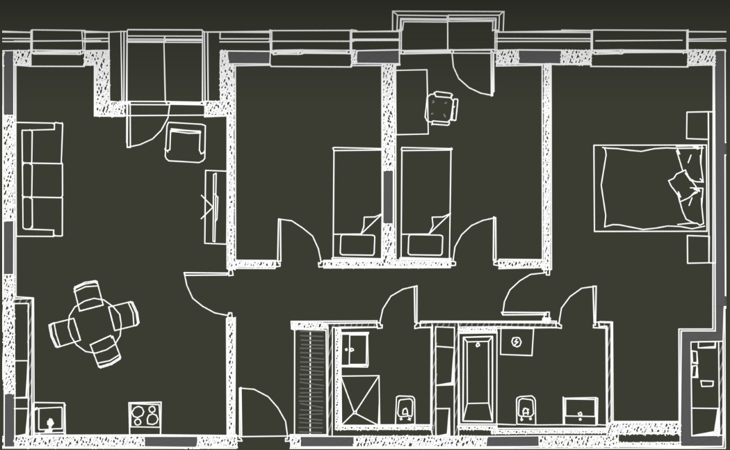 Также апартамент имеет функциональную планировку: уютная гостиная, кухня открытого типа, 3 спальни (мастер-спальня, две детские), ванная комната и гостевой санузел с душевой кабиной.