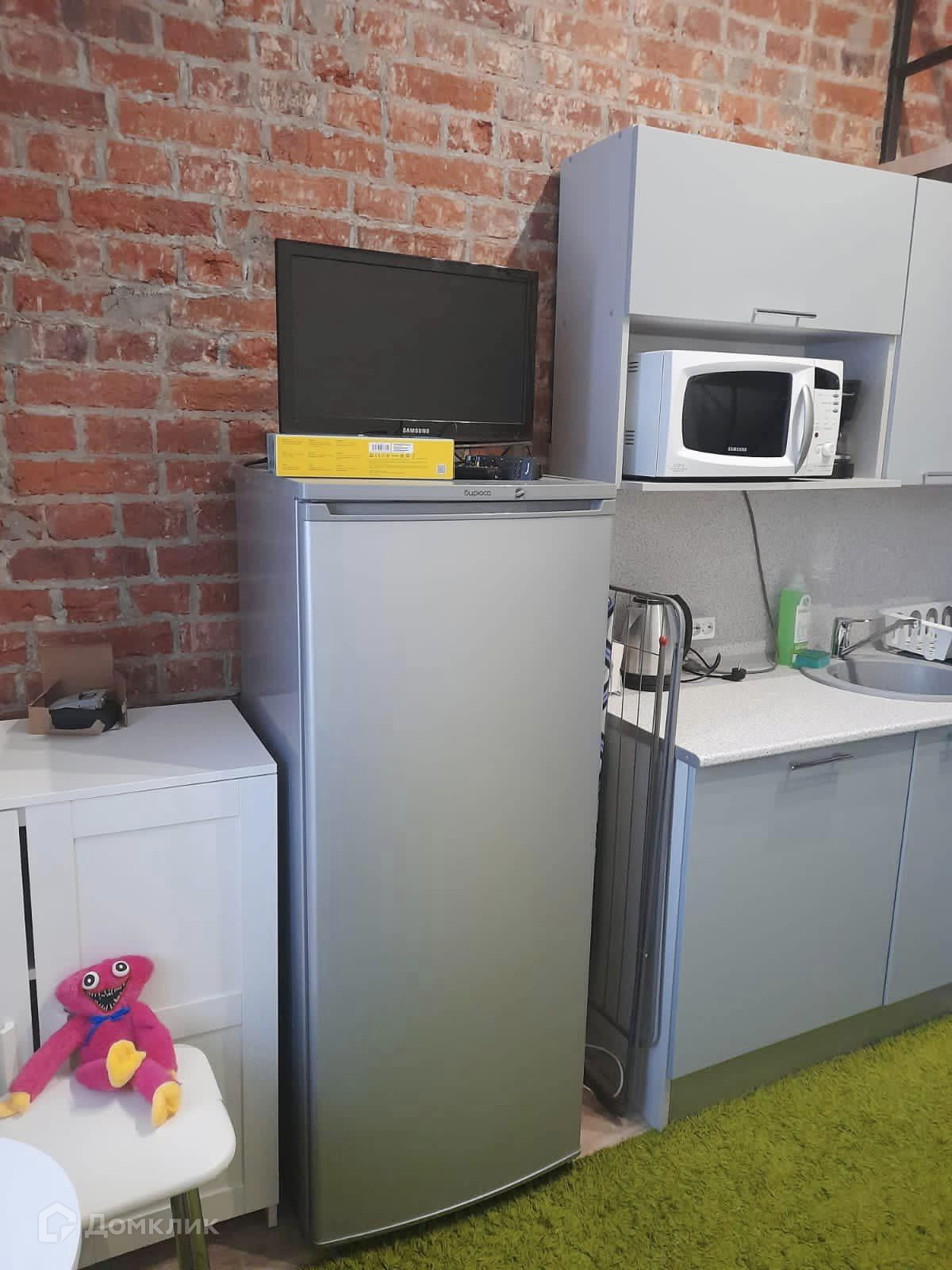 Квартира компактная, но очень уютная. Всё необходимое для жизни есть. Удобное спальное место на втором этаже. (На втором этаже расстояние от кровати до потолка 1 метр  20 см)