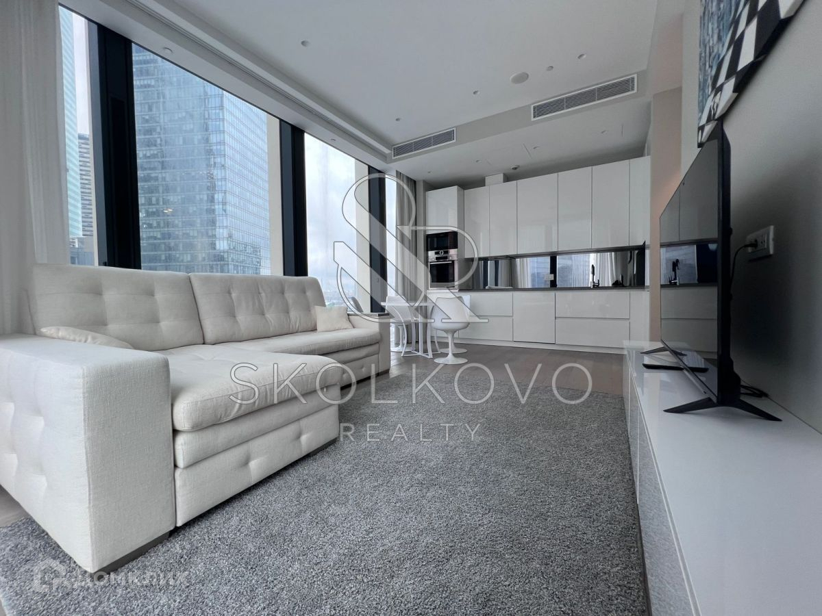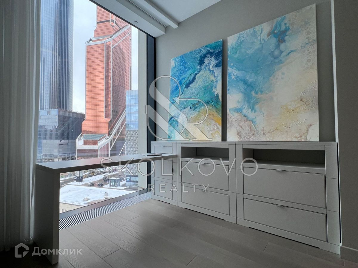 Апартаменты расположены на 6 этаже 76-этажного дома. Из окон открывается панорамный вид на Деловой центр «Москва-Сити» и Москву-реку.