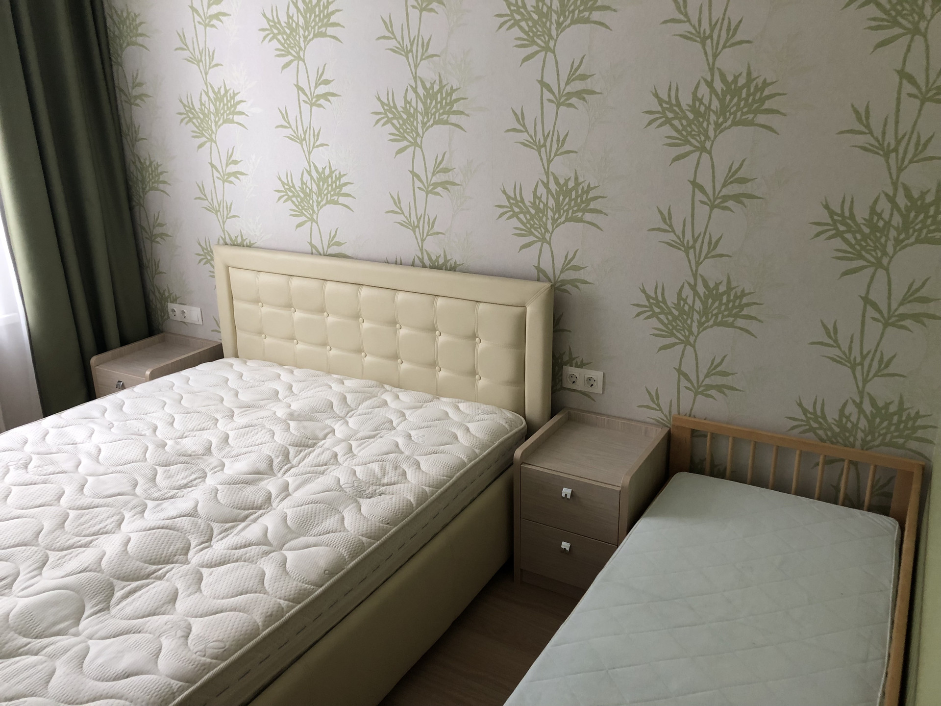 В спальне двуспальная кровать 160х200 с ортопедическим матрасом высотой 22 см. При необходимости также оставим детскую кровать (для ребенка 2 - 7 лет). В другой комнате - раскладывающийся в двуспальное место диван. Телевизор Sony Bravia 43" со смарт-ТВ на ОС Android можно легко перевесить в любую комнату (есть настенные крепления в каждой комнате). Есть роутер (подключен интернет 100 Мб/с).