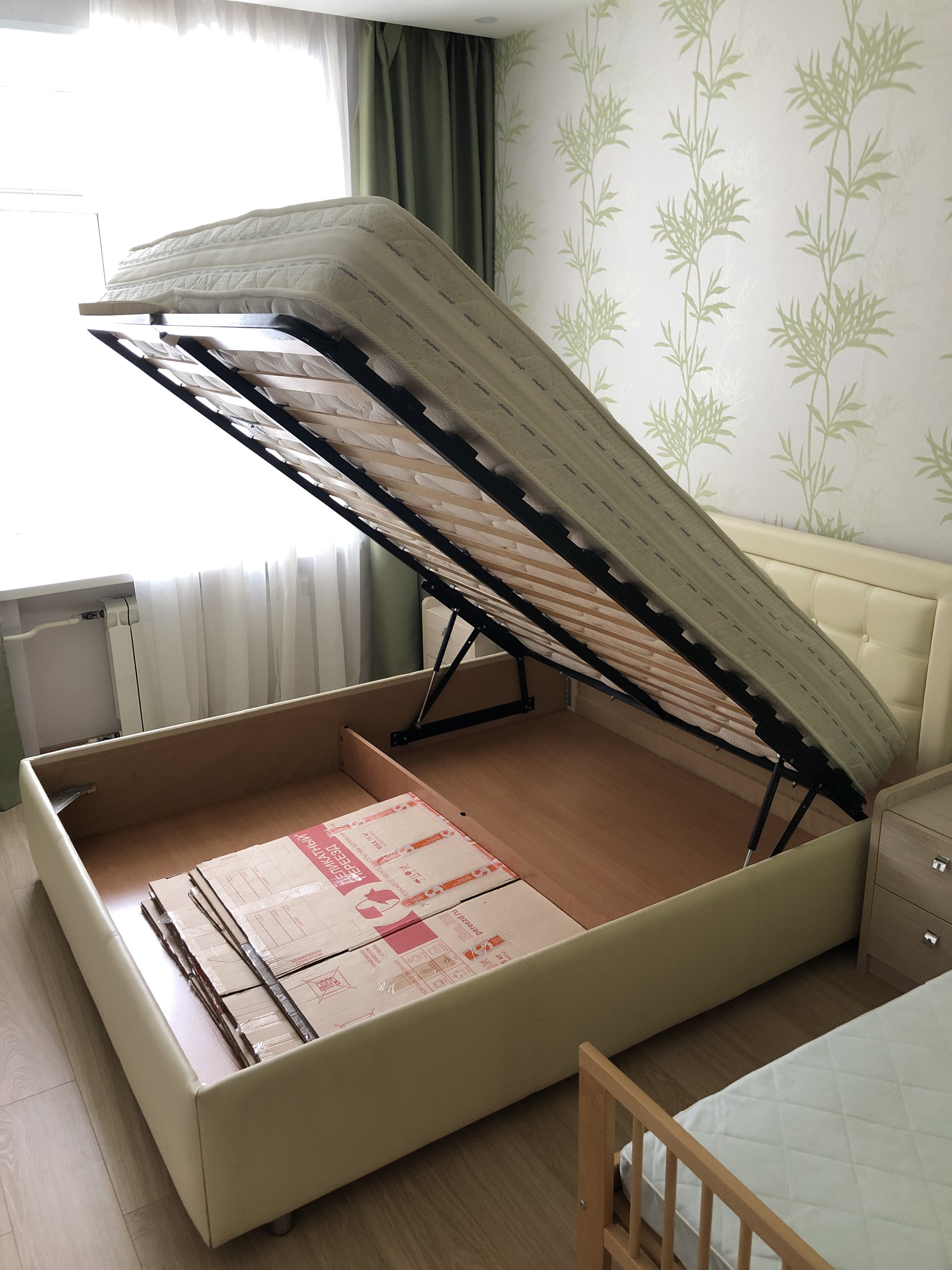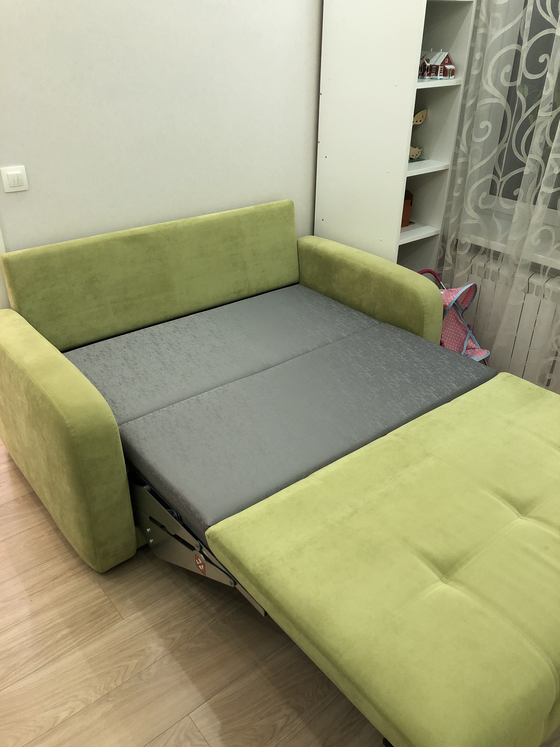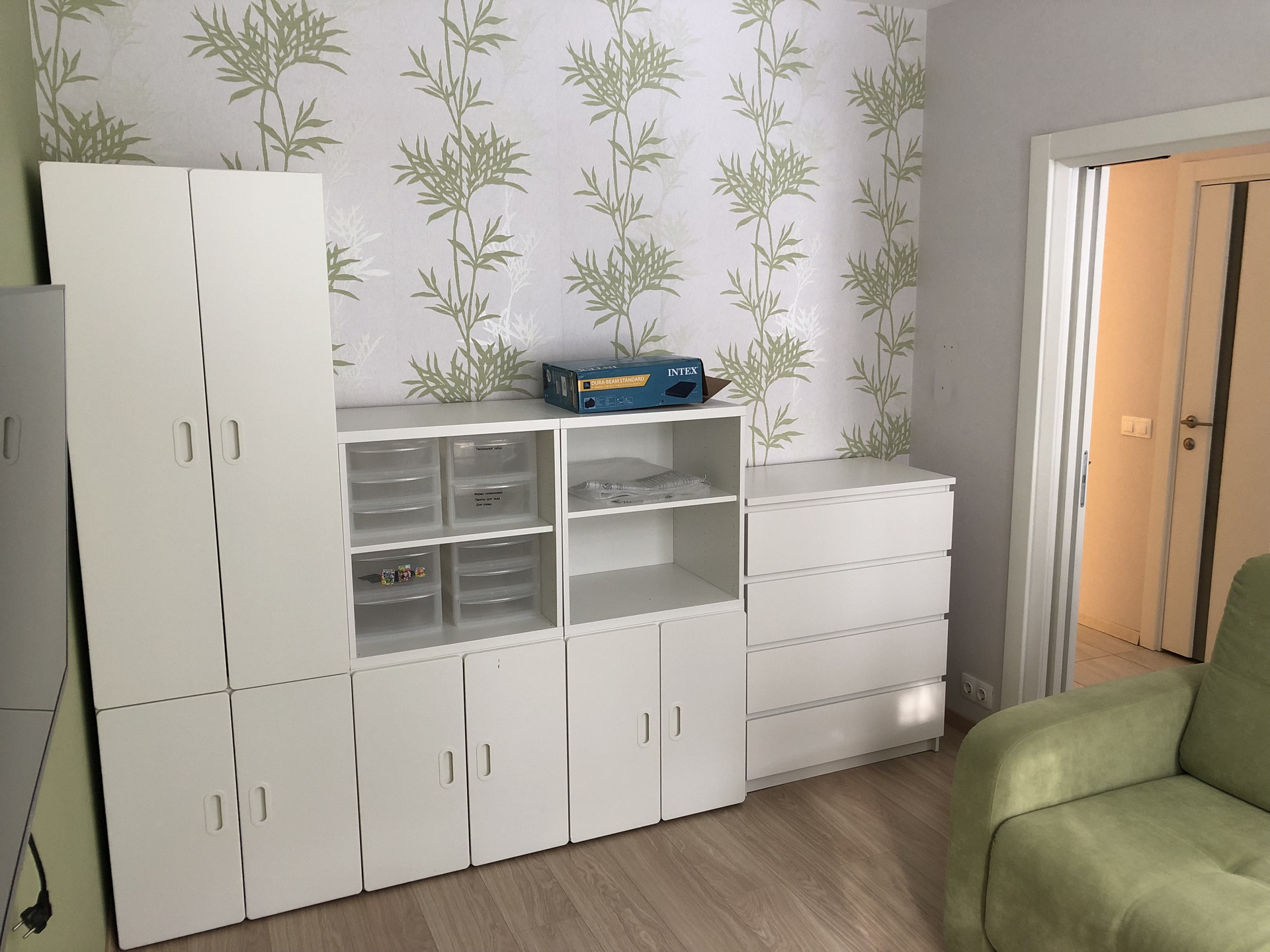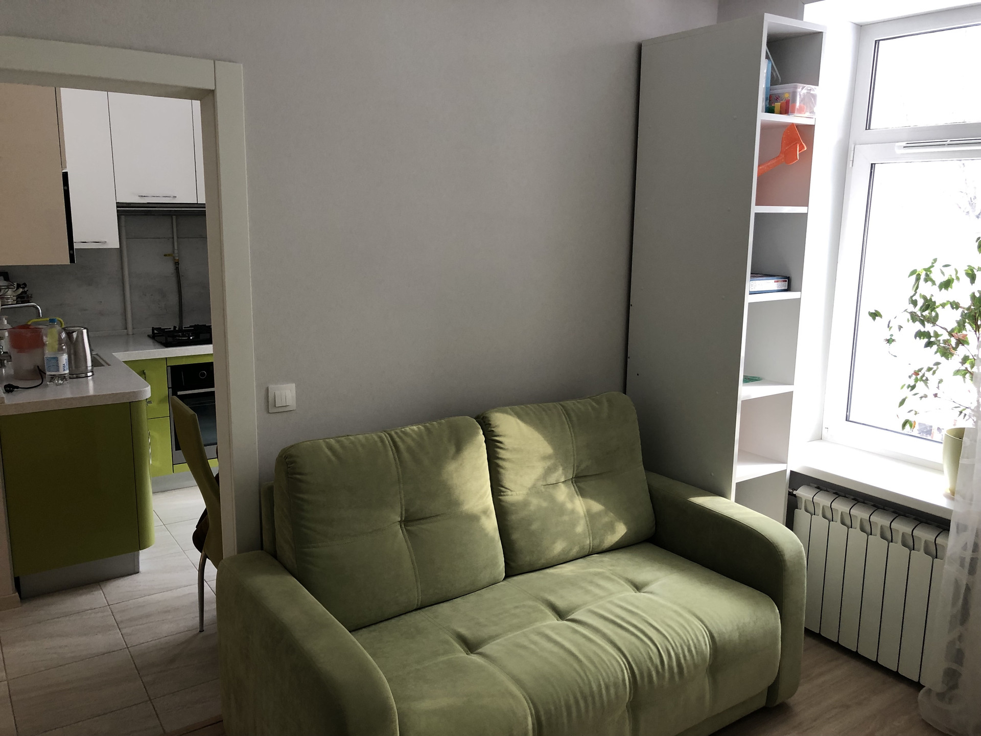 Две изолированные комнаты. Раздельный санузел. Кухня визуально расширена. Много места для хранения: продуманная гардеробная, огромный шкаф-купе для вещей и одежды, двуспальная кровать с подъемным механизмом и ящиками, а также большой шкаф в санузле.