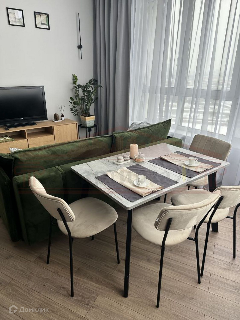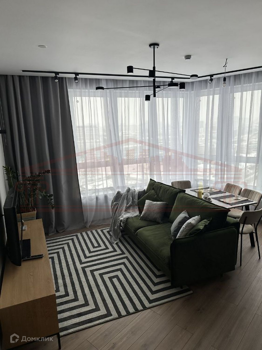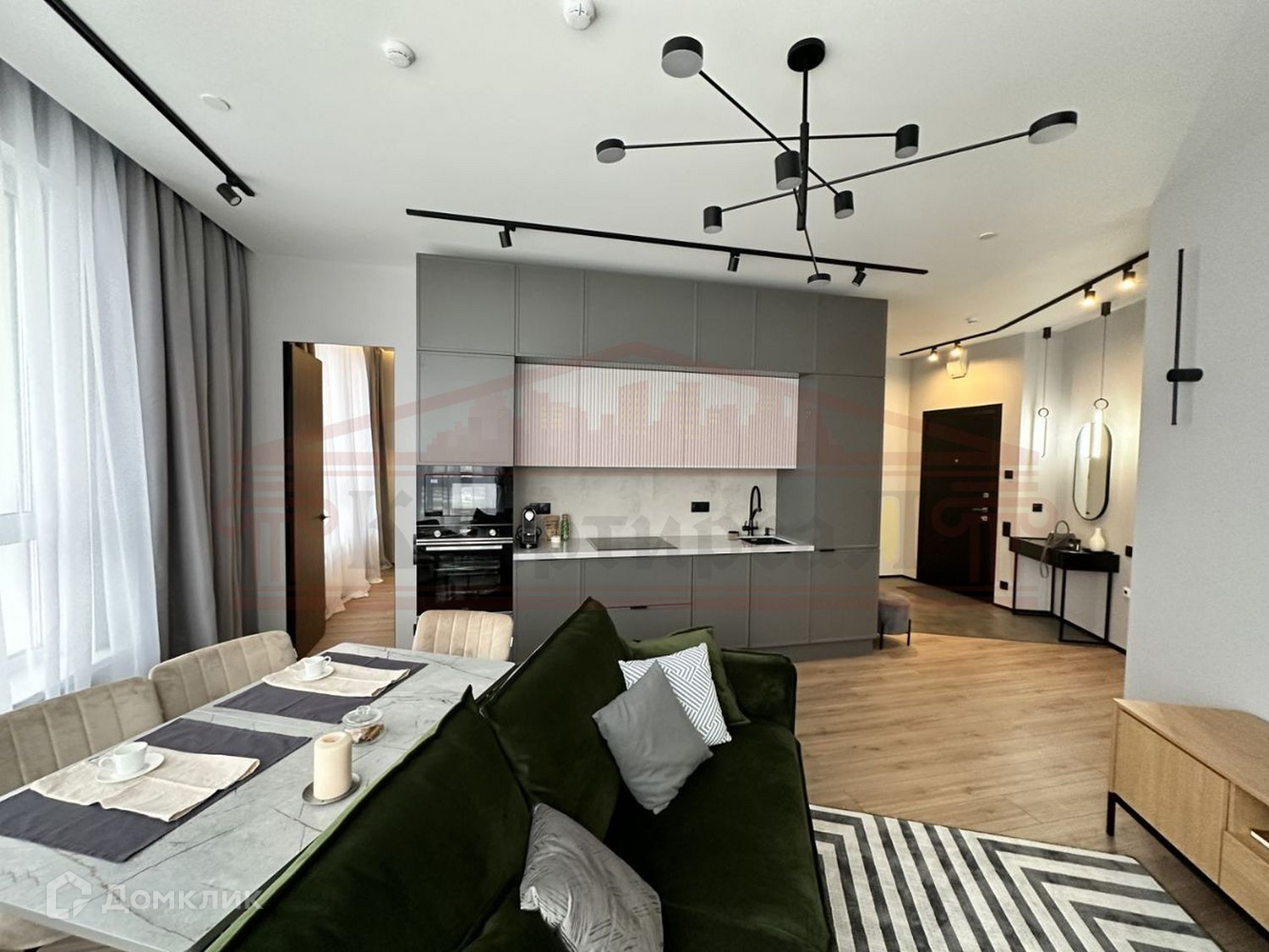 Планировка: просторная кухня-гостиная ,мастер спальня с отдельным санузлом и гардеробной, еще одна комната свободного использования ( может быть детской или кабинетом)