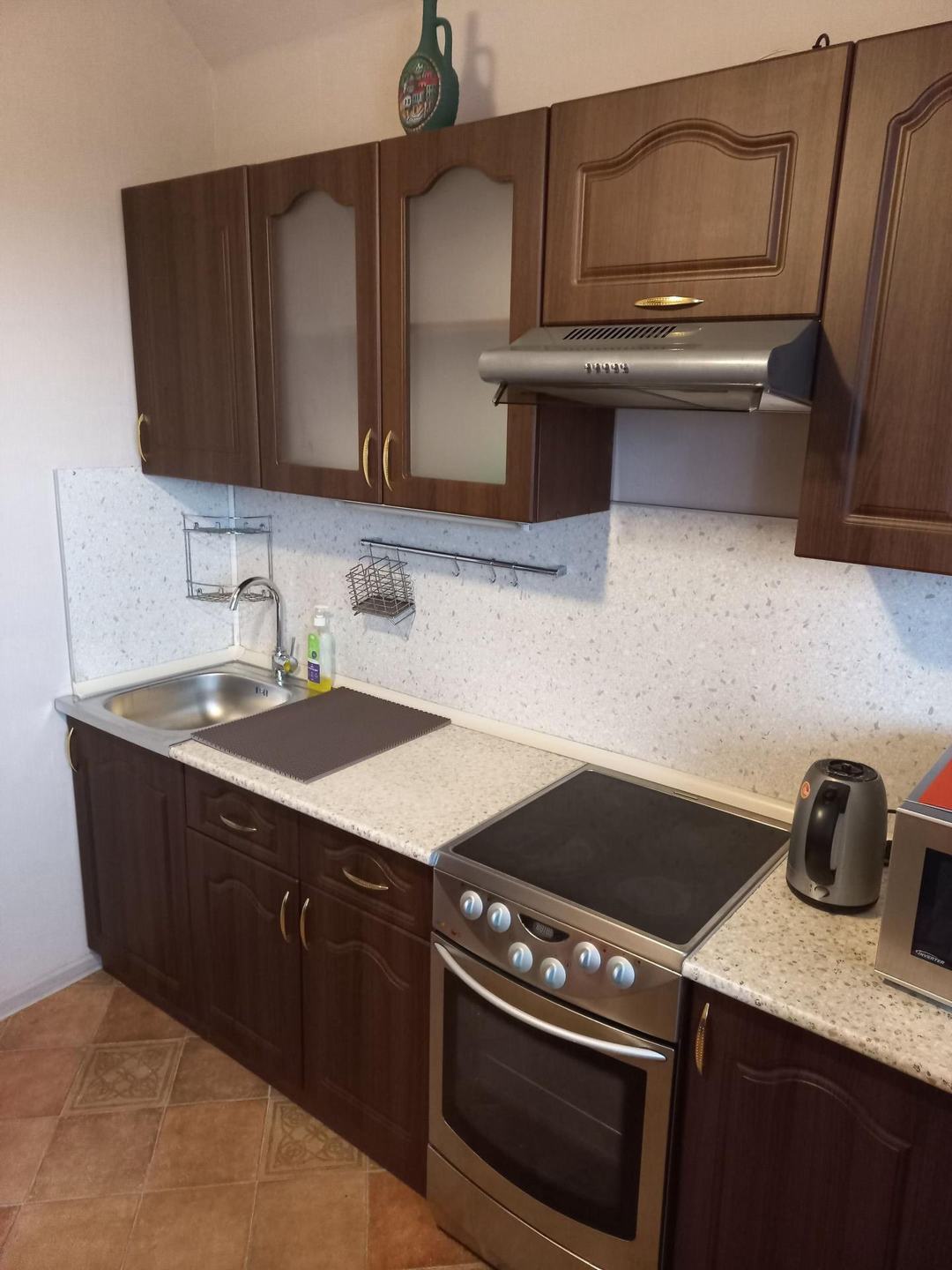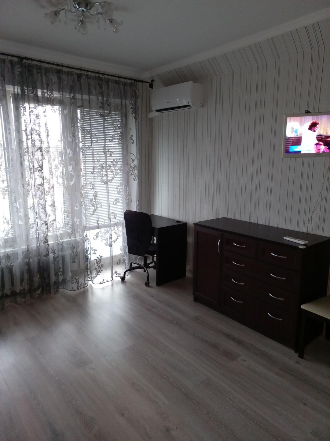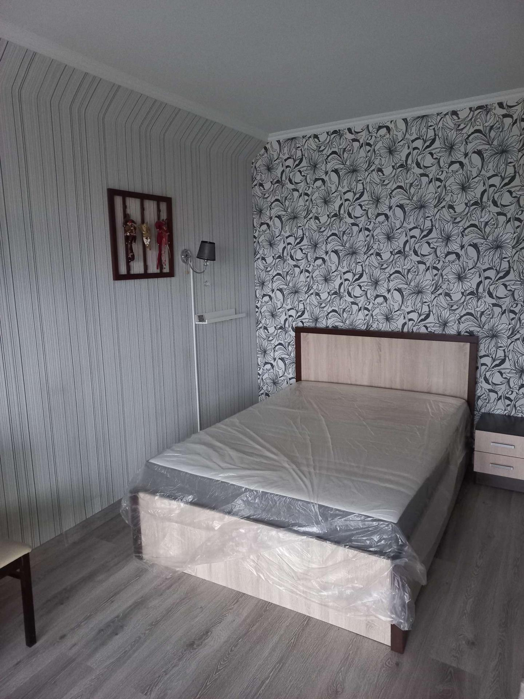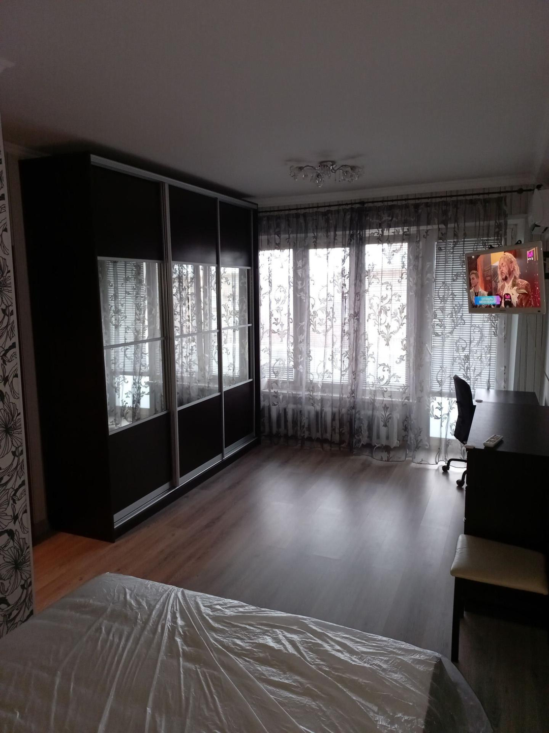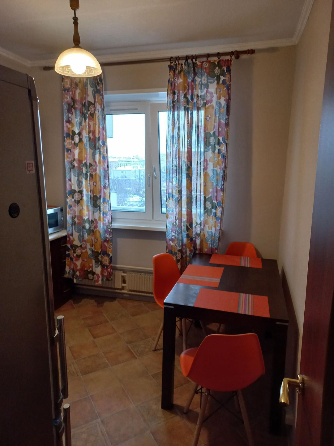 Квартира полностью мебелирована (прихожая, шкаф-купе, комод, кровать, прикроватная тумба, обеденный стол со стульями), необходимая бытовая техника (стиральная машина, электроплита с духовкой, СВЧ, электрочайник, кондиционер). Квартира готова к проживанию, проведена профессиональная генеральная уборка. Перед входом в квартиру - просторный тамбур с металлической дверью на 2 квартиры (можно хранить велосипед, детскую коляску). Соседи пожилая адекватная пара пенсионеров.