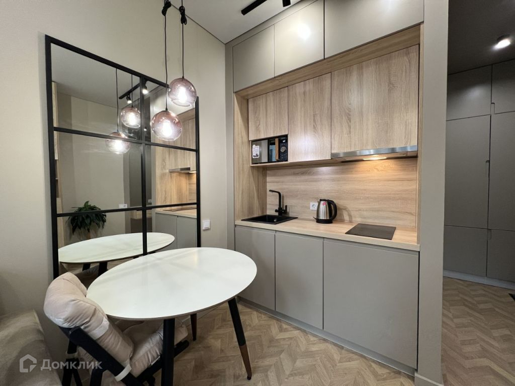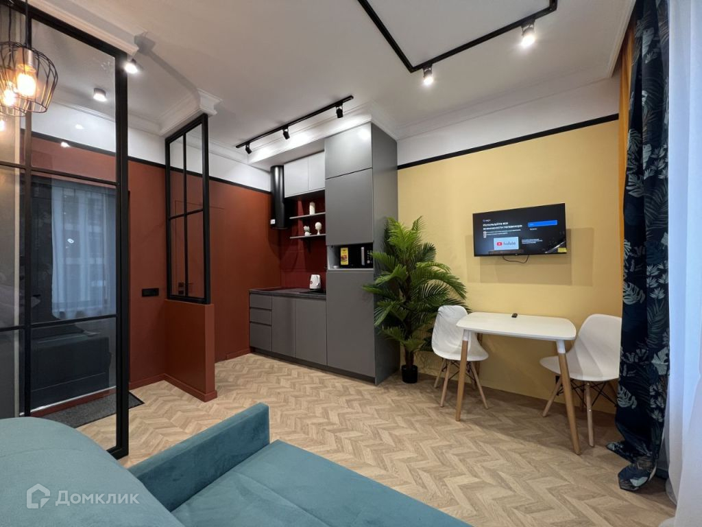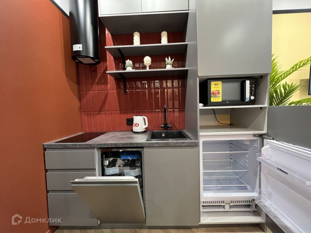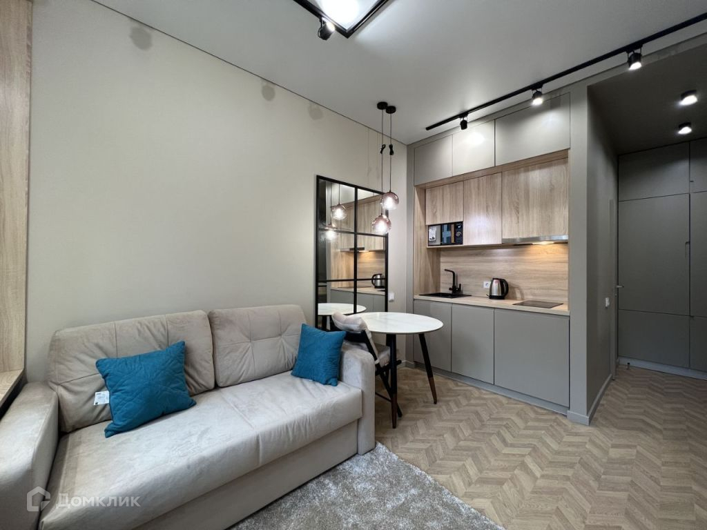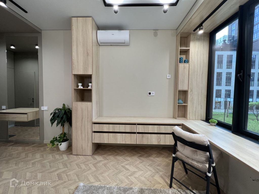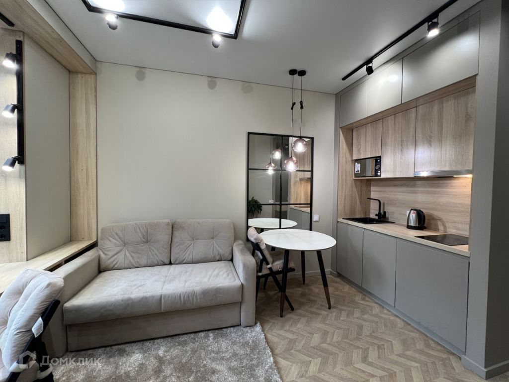 Многофункциональная студия со всем необходимым: посудомоечная машина, стиральная машина с сушилкой, кондиционер, ортопедический диван-кровать Аскона и другое.