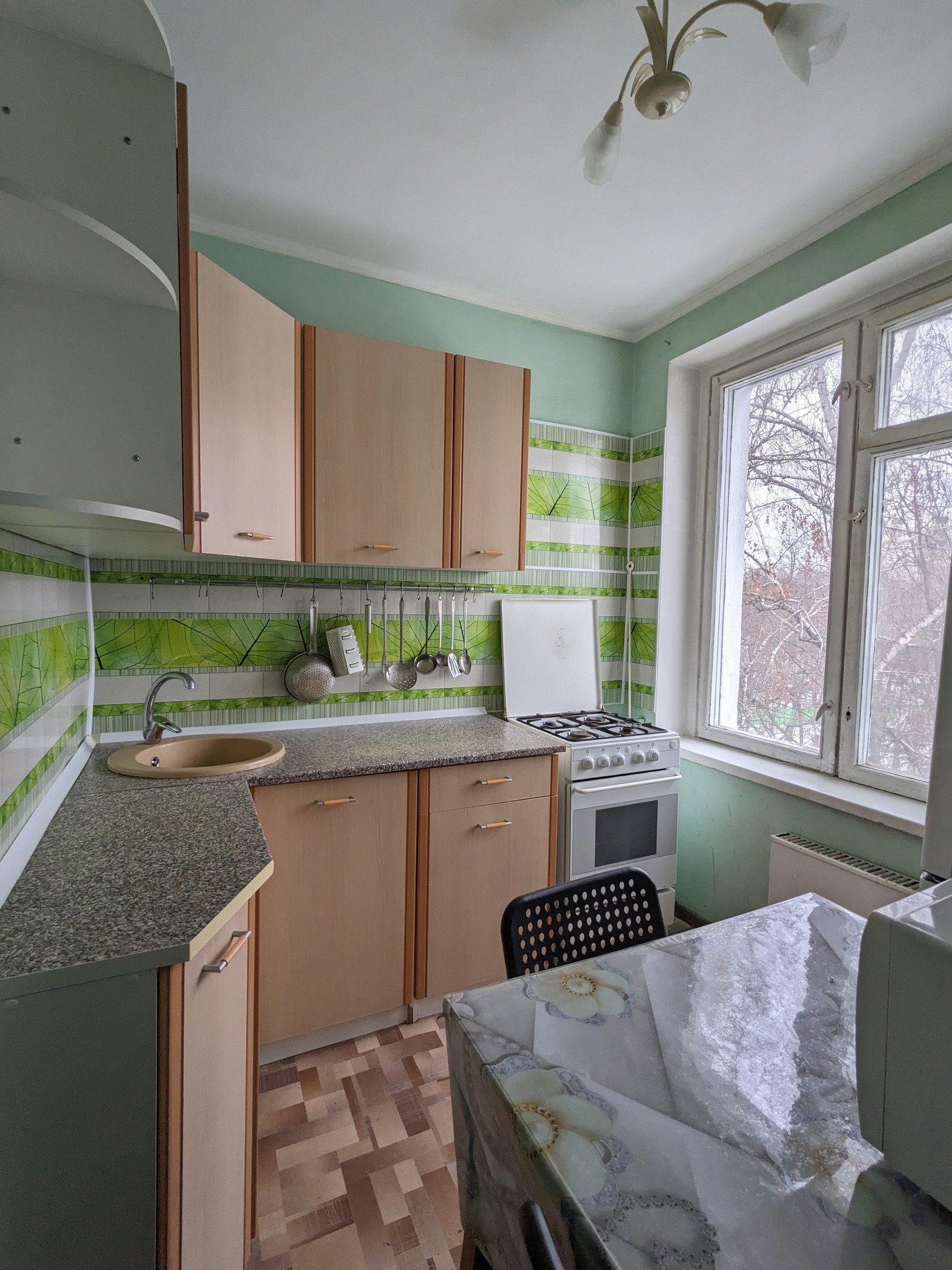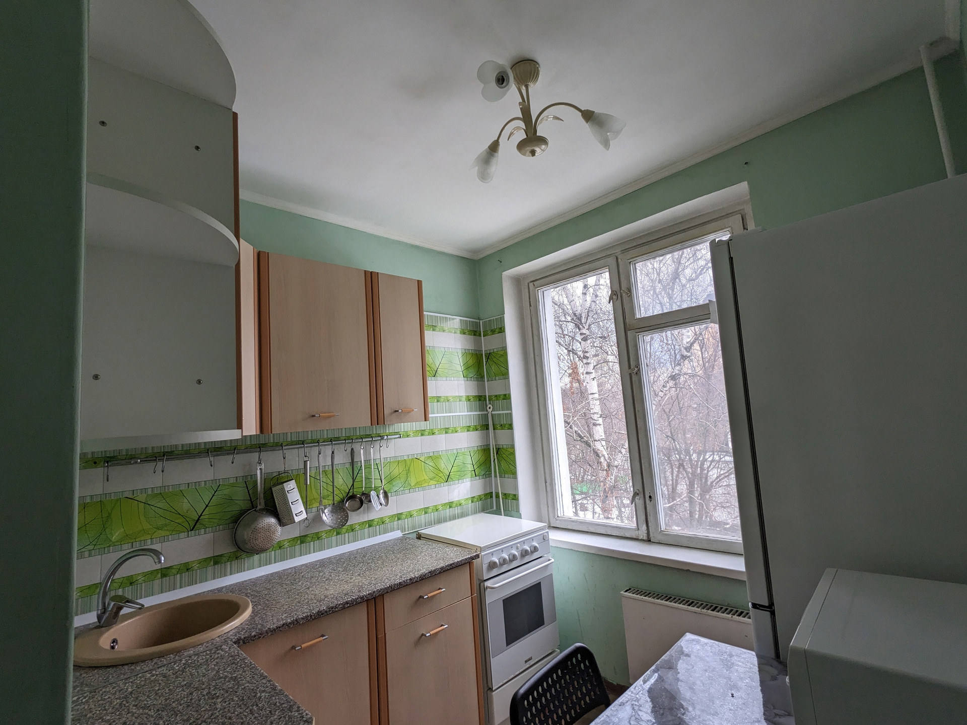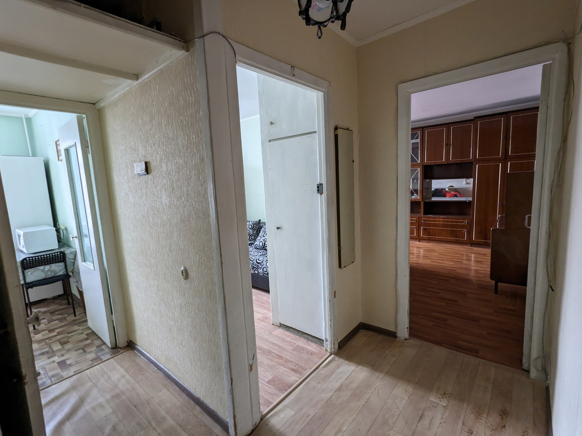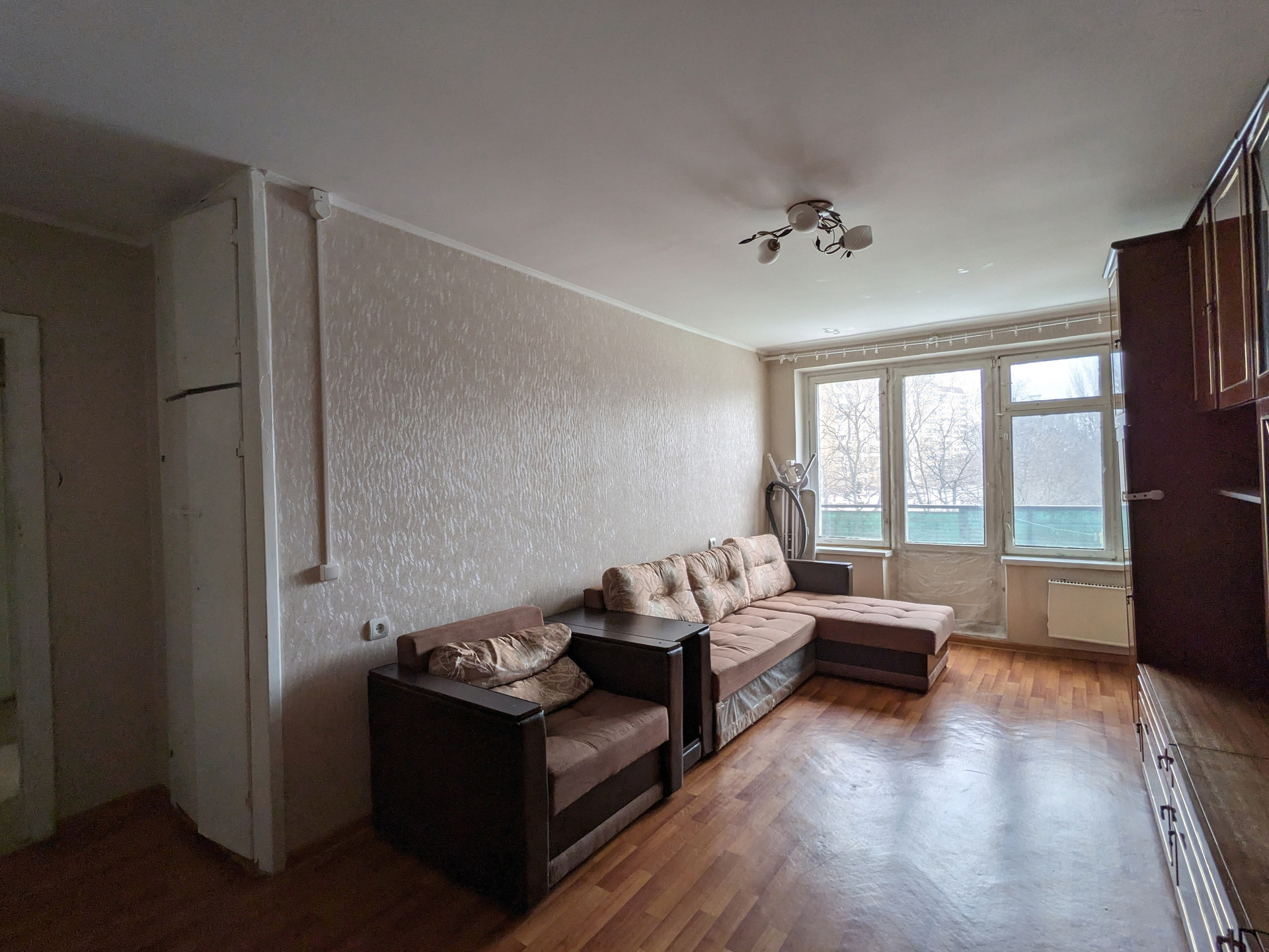Квартира полностью оснащена осветительными приборами: в жилых комнатах, коридоре и прихожей установлены люстры.