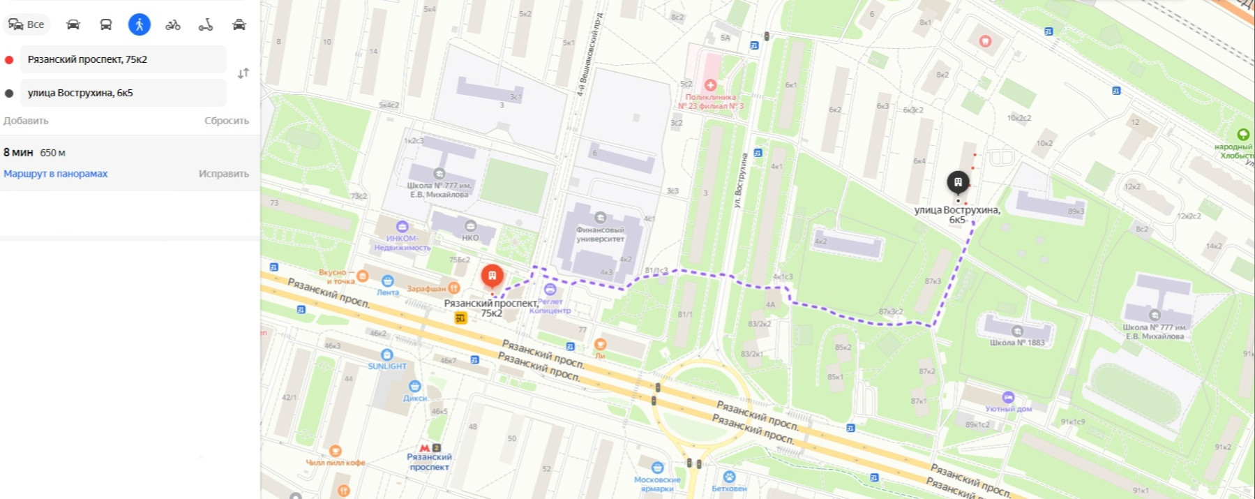 м.Рязанский проспект 7 мин. пешком
