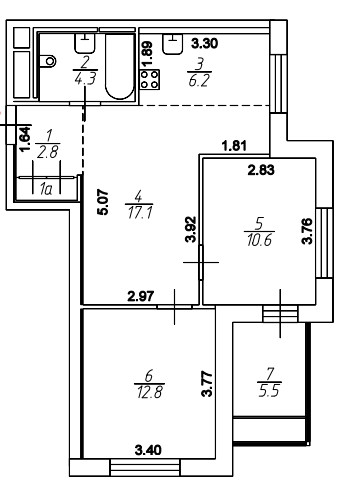 Евротрешка: 2 изолированные комнаты и кухня-гостиная.