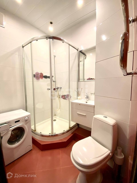 - В санузле находится душевая кабина, раковина, тулет и стиральная машина;