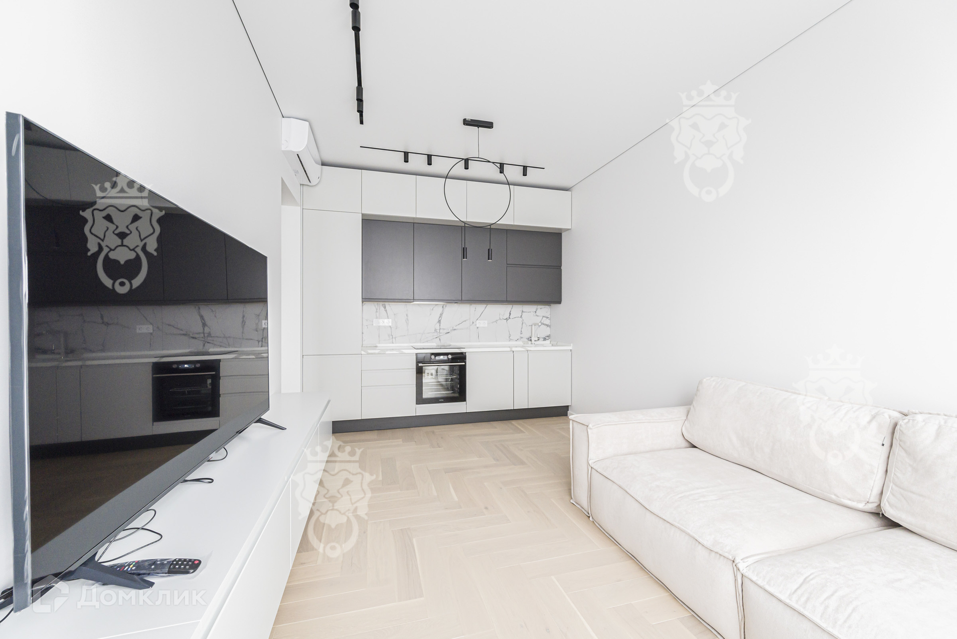 Студийная планировка совместила в единое пространство полностью оборудованную современной бытовой техникой кухню и зону гостиной с удобной мебелью. Спальня оснащена всем необходимым для комфорта. Санузел  (ванна) оборудован качественной европейской сантехникой. Предусмотрены места для хранения - встроенные шкафы. Установлены: система кондиционирования, теплый пол.