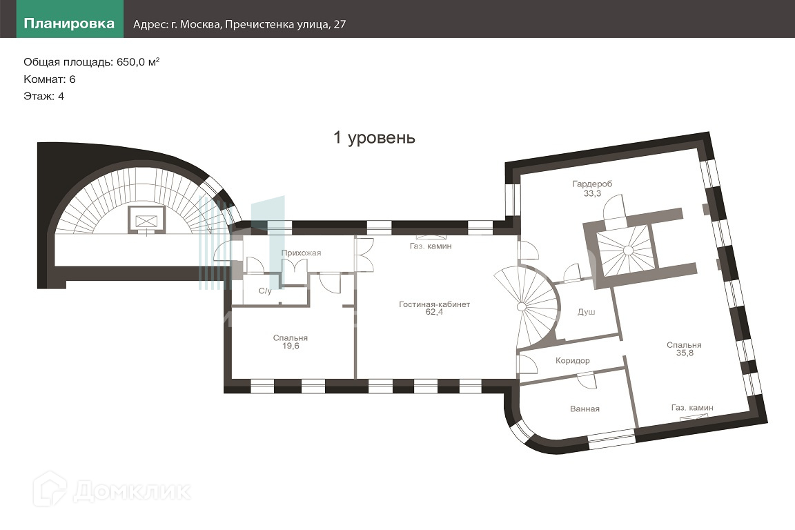 ID 21042 Предлагается шикарный пентхаус в клубном доме на 8 квартир, расположенный в историческом центре Москвы, на Пречистенке. Бывший доходный дом купца первой гильдии К.П. Половинкина построен по индивидуальному проекту. Внешний облик фасада формируют элегантные эркеры, решетки и другие декоративные элементы. В отделке входных групп использована лепнина и мрамор. Особняк с закрытой территорией, круглосуточная вооруженная охрана, наземный паркинг, детская площадка.