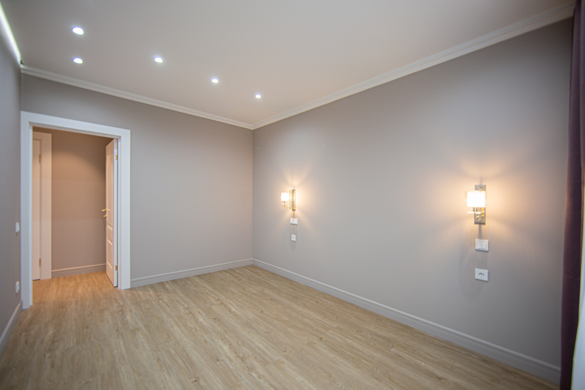 В уютной спальне скоро ждем установку двуспальной кровати в компании двух приктоватных тумб.