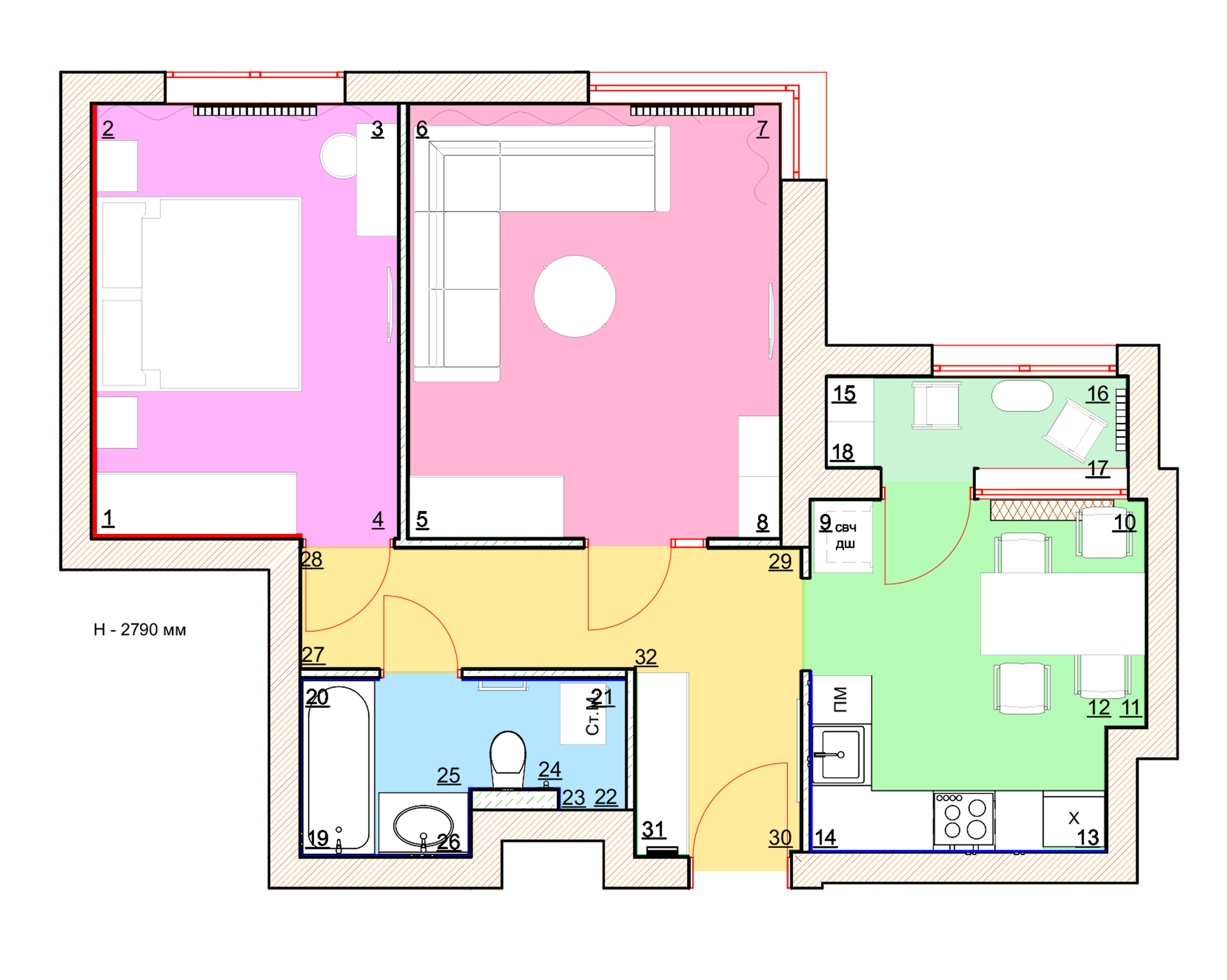 Высота потолков 2.8 м