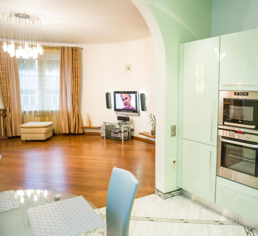 Итальянская кухня со встроенной техникой - посудомоечная машина, микроволновая печь, духовой шкаф, варочная панель, вытяжка, холодильник.