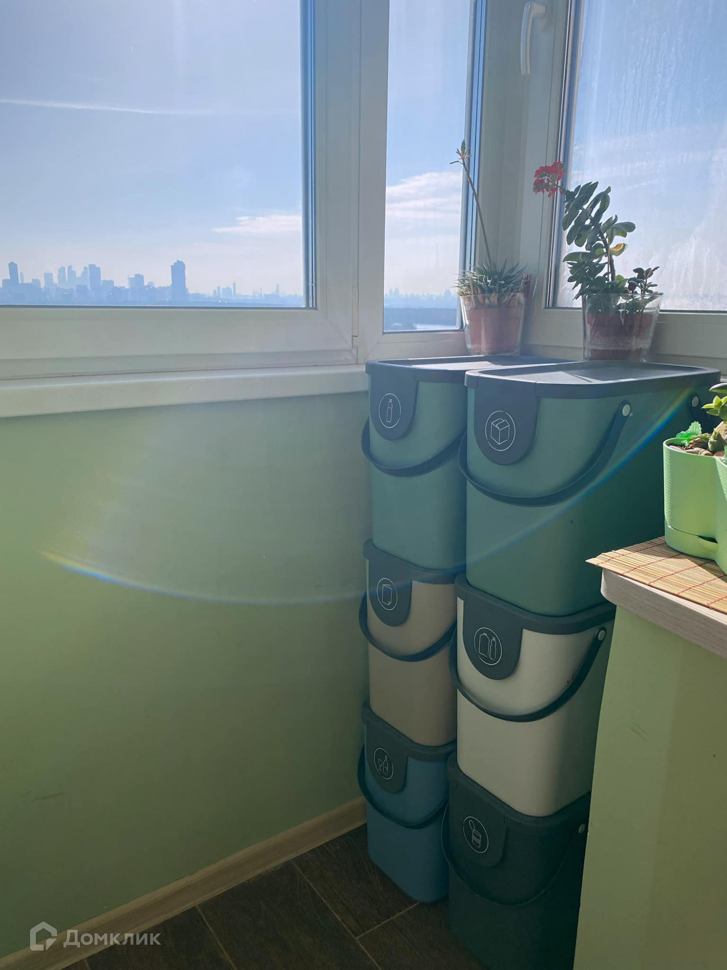 Балкон с дополнительным местом хранения и зоной для сбора раздельного мусора.