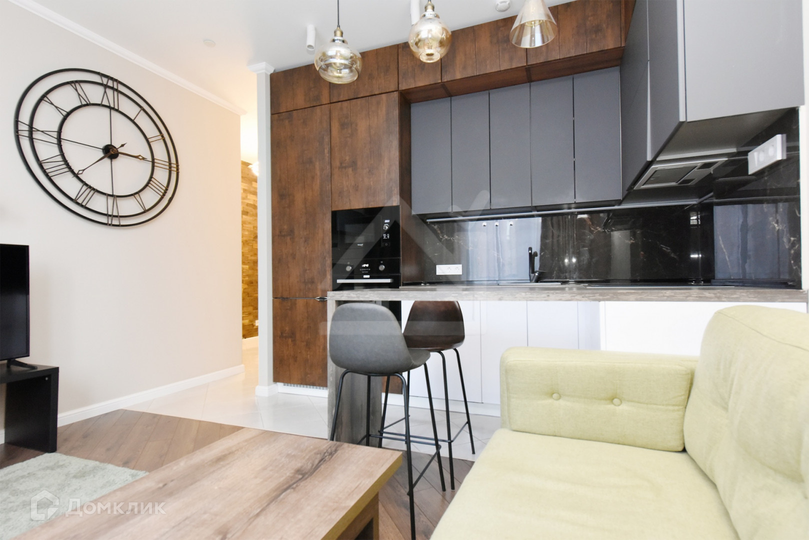 В апартаментах сделан свежий дизайнерский ремонт. Общая площадь апартаментов: 45 м2. Площадь кухни: 7 м2. Жилая площадь: 26 м2. Сан. узел совмещённый в плитке (ванная). Окна — стеклопакеты (тихий двор). На полу — ламинат, плитка. Вся мебель и бытовая техника (включая посудомоечную машину) новая, для комфортного проживания. На входе в апартаменты установлен видеодомофон с выводом, как на улицу, так и на площадку.