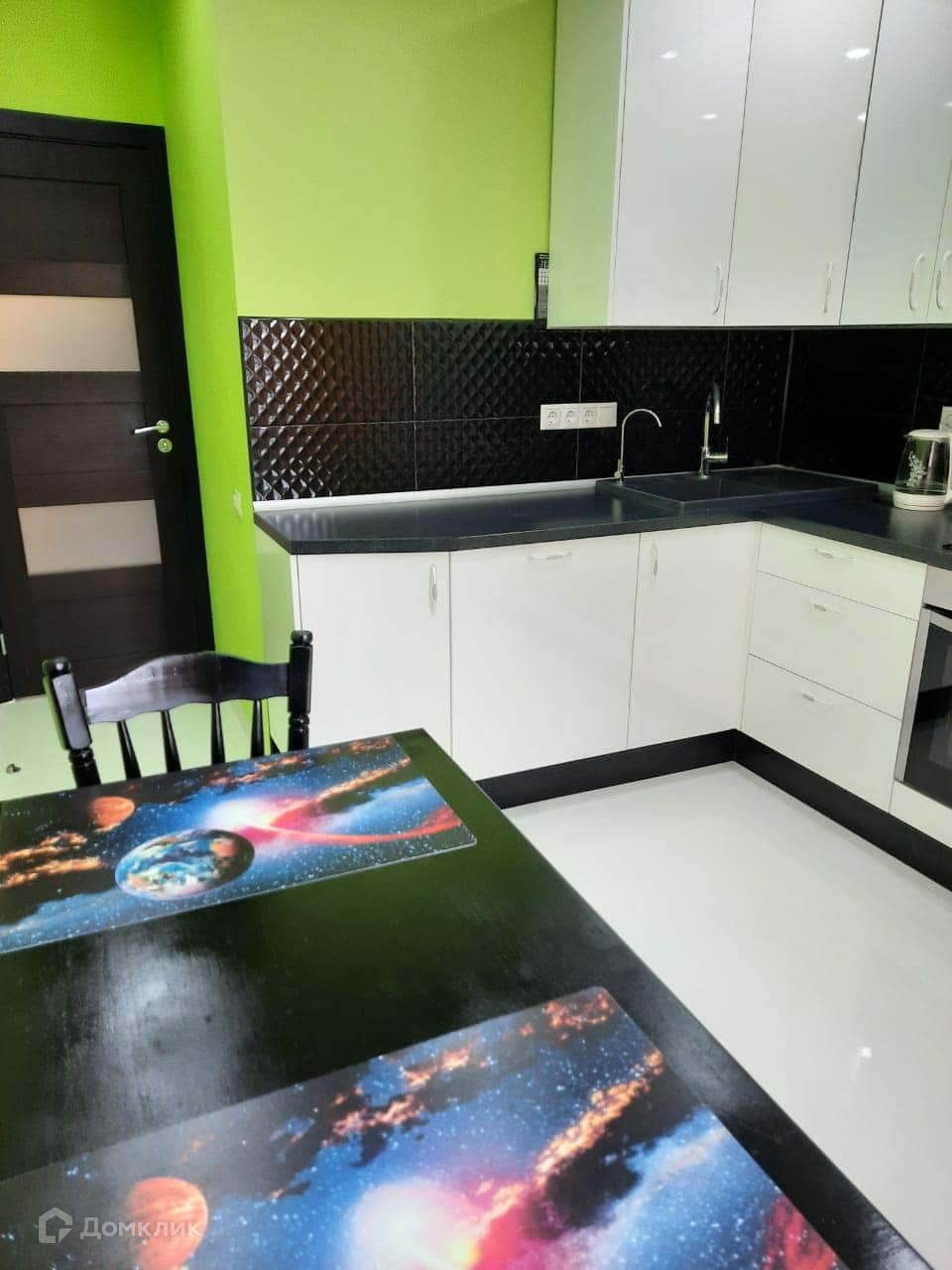 В квартире сделан хороший современный ремонт, и есть все для комфортного проживания. На кухне много места(видно по фото) и выход на просторный балкон с понарамными окнами. В комнате большая и удобная кровать с хорошим матрасом.