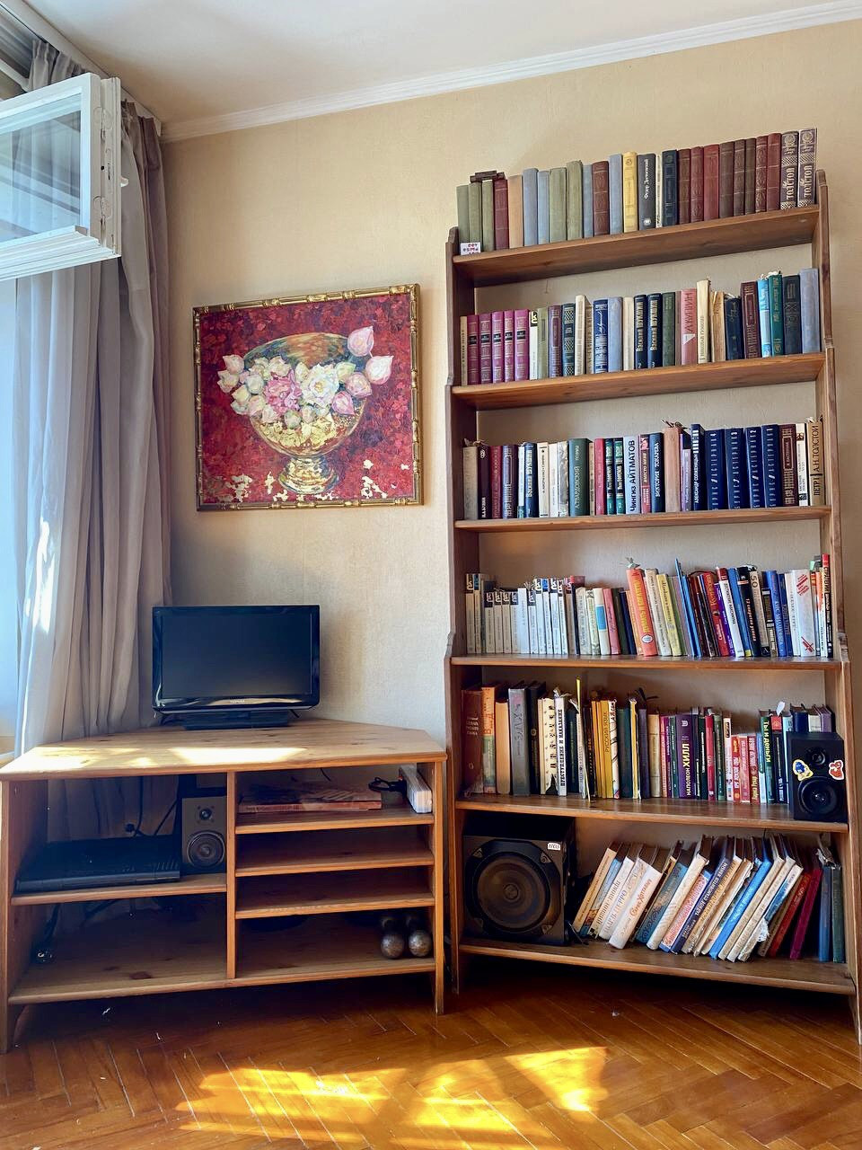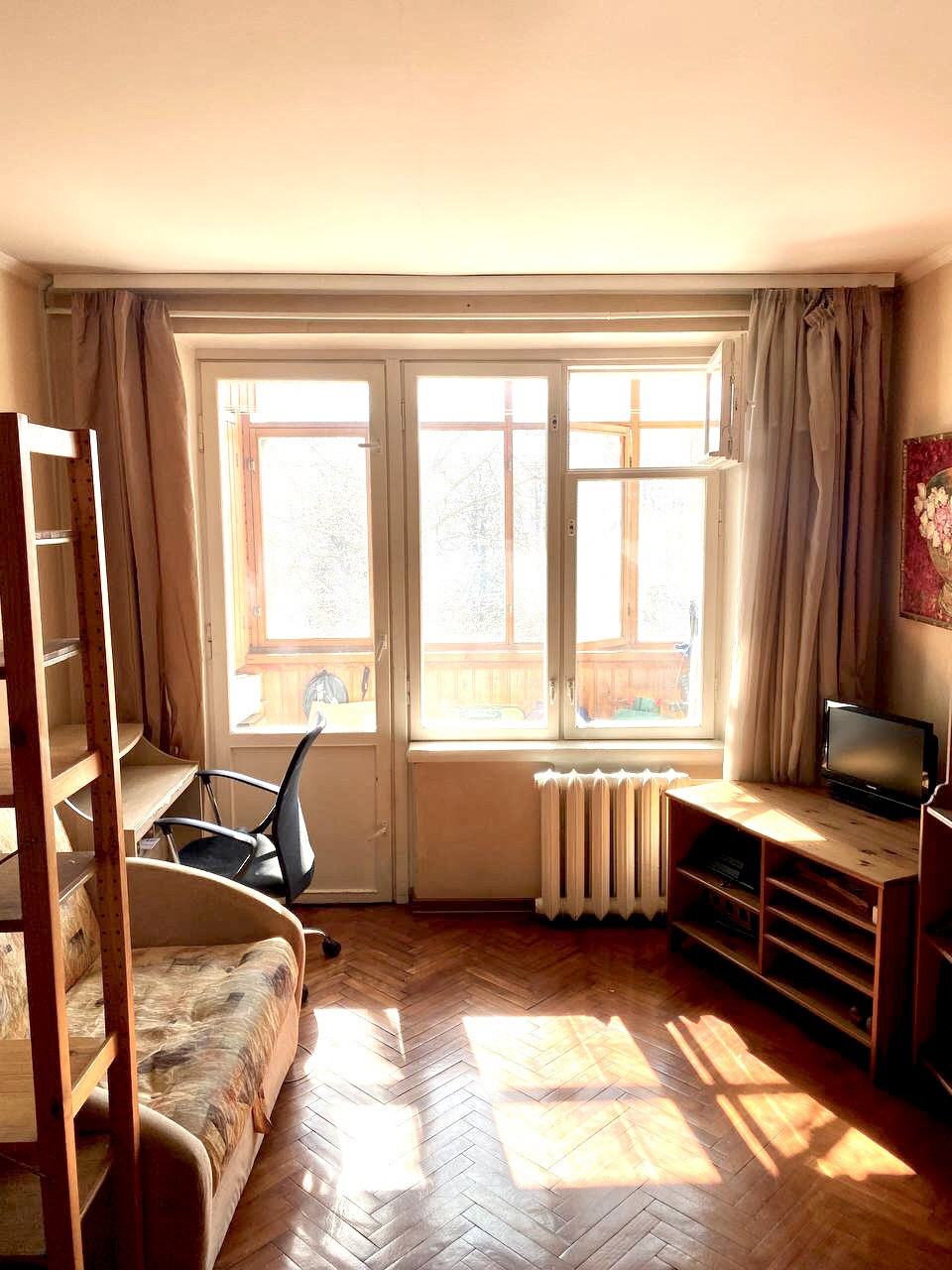 Квартира чистенькая. Для жизни есть все необходимое: бытовая техника, холодильник, стиральная машинка; телевизор, интернет. Полы в комнате: паркет. Санузел раздельный.