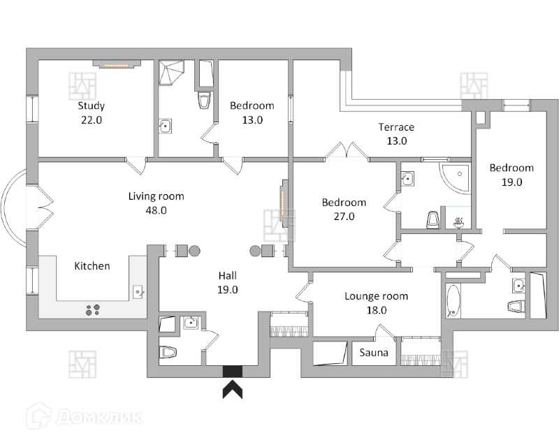 Лот: 42549. С коллегам работаем 50/50! Идеальная резиденция для посольства! В клубном доме в районе Арбата предлагается великолепная  6-комнатная квартира в классическом стиле с  удобной планировкой. Общая площадь квартиры 233 кв.м. Гостиная - кухня с обеденной зоной, 3 спальни, кабинет, 3 ванных комнаты и гостевой санузел, сауна, балкон и застекленная терраса. Предлагается полностью меблированной и оснащенной  бытовой техникой от ведущих производителей. Приточно-вытяжная вентиляция, камин, теплый пол, интернет, видеодомофон. Дом с круглосуточной охраной и видеонаблюдением. Парковка на огороженной территории дома.