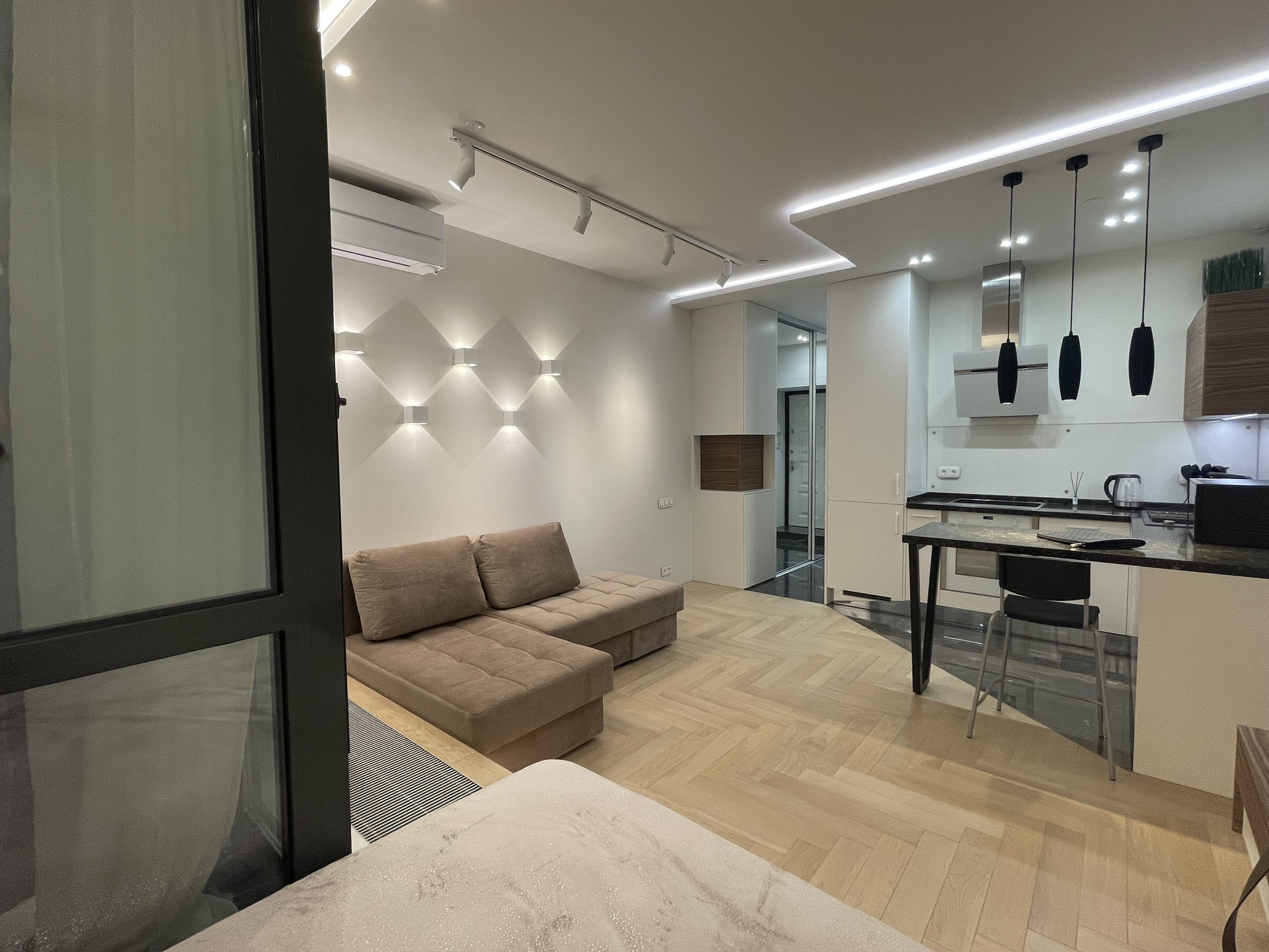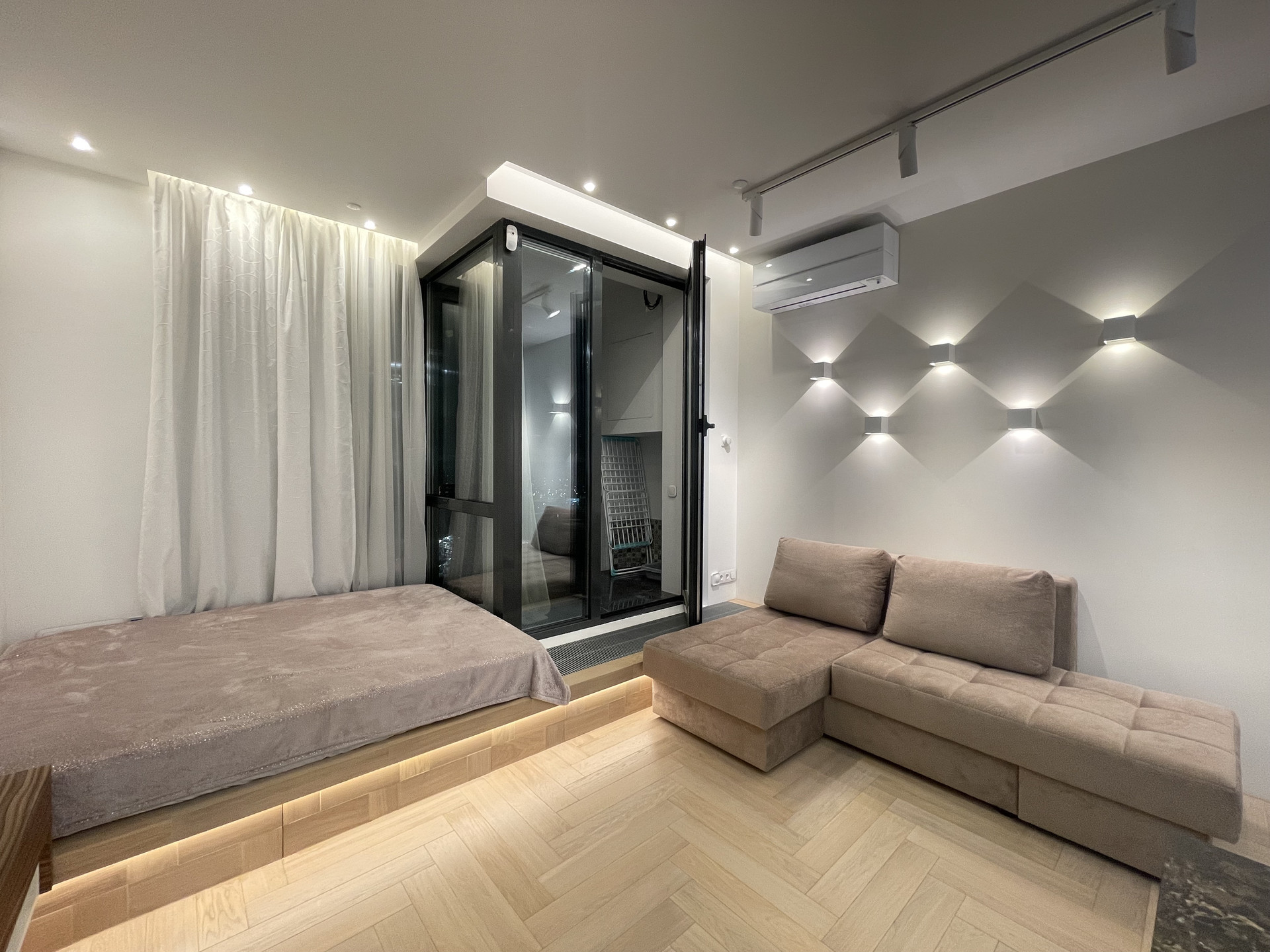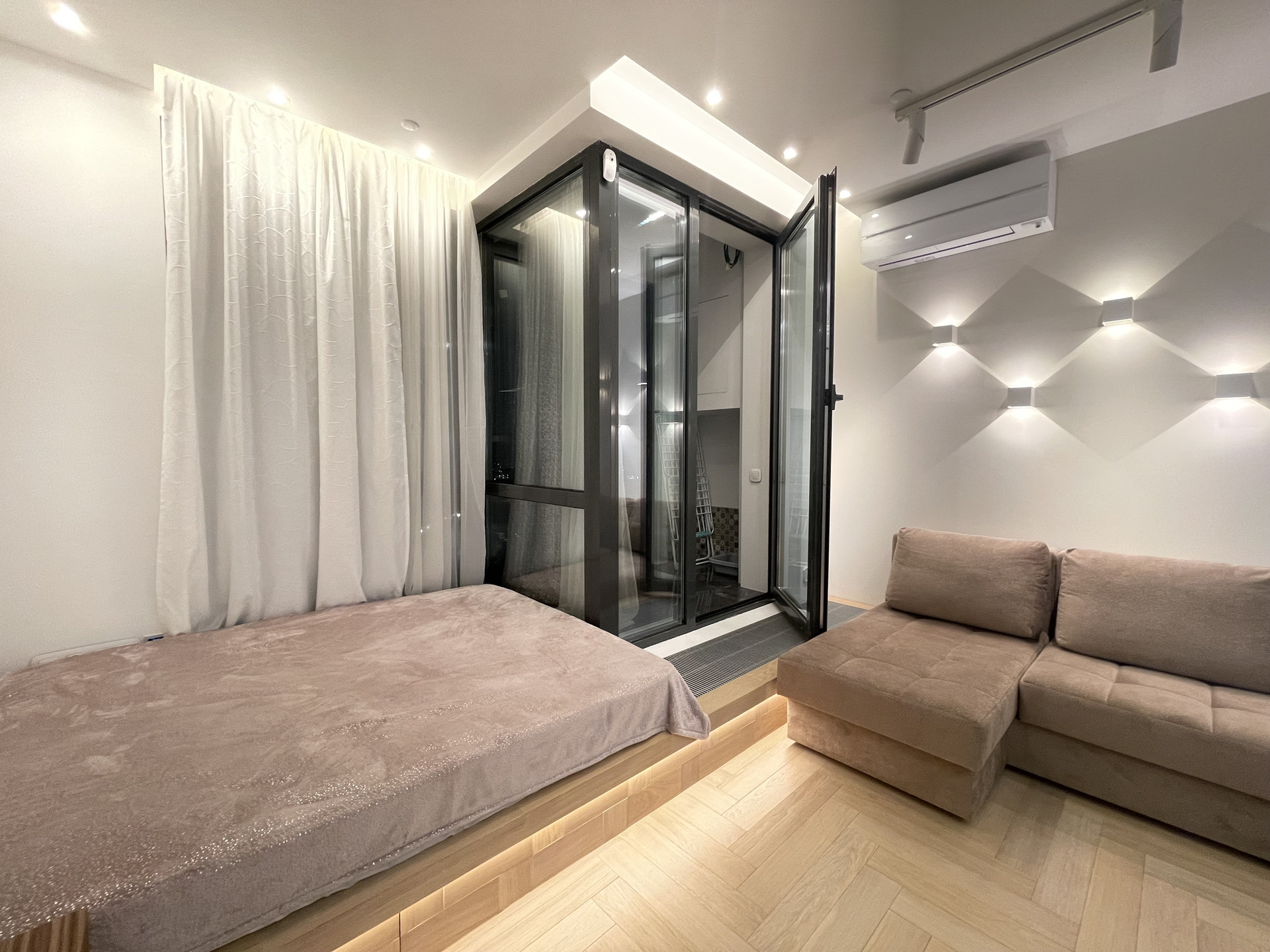 СТИЛЬНАЯ, ОЧЕНЬ УЮТНАЯ квартира после свежего ВЫСОКОКАЧЕСТВЕННОГО ДИЗАЙНЕРСКОГО ремонта - делали для себя. ВСЕ ПРОДУМАНО ДО МЕЛОЧЕЙ. Пол - натуральное дерево - дуб, керамогранит. Высокие потолки 3 м. Шумоизоляция по периметру квартиры (в том числе пол и потолок) - качество как для звукозаписывающей студии. Функциональная планировка - единое пространство: СТУДИЯ с зоной гостиной и зоной спальни (на подиуме), элегантный совмещенный санузел с ванной, утепленный балкон.